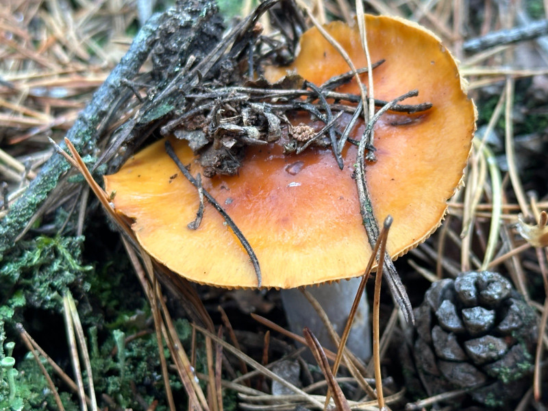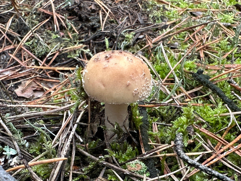 Das Foto oben zeigt leider den Stiel nicht richtig und ist am Hut auch etwas überbelichtet. Karim sagt der Pilz hatte einen glatten Stiel und eine Knolle, was nicht zu C. carcharias passt.