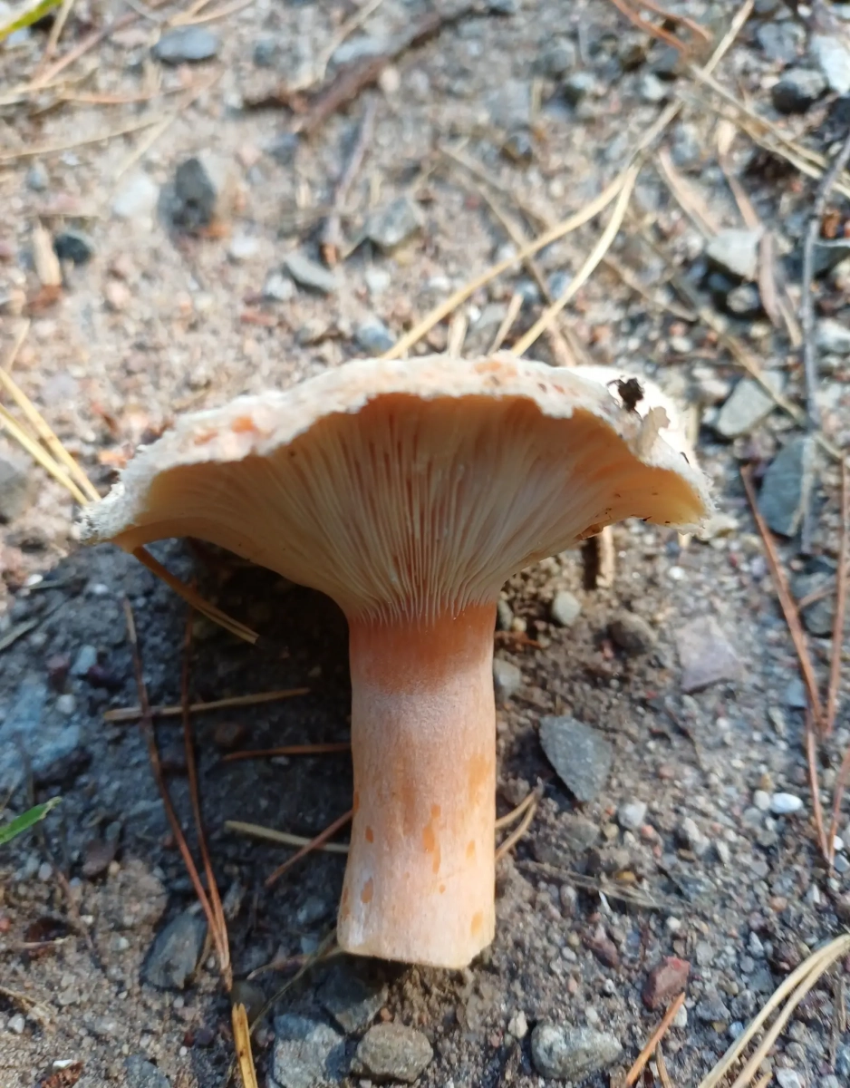 Die ersten beiden Fotos: Zunächst dachte ich an Reizker - Hüte waren sehr blass; und beim Anschnitt hat sich allerdings nichts verfärbt. Kaum Milch, auch bei den jüngeren Exemplaren nicht.