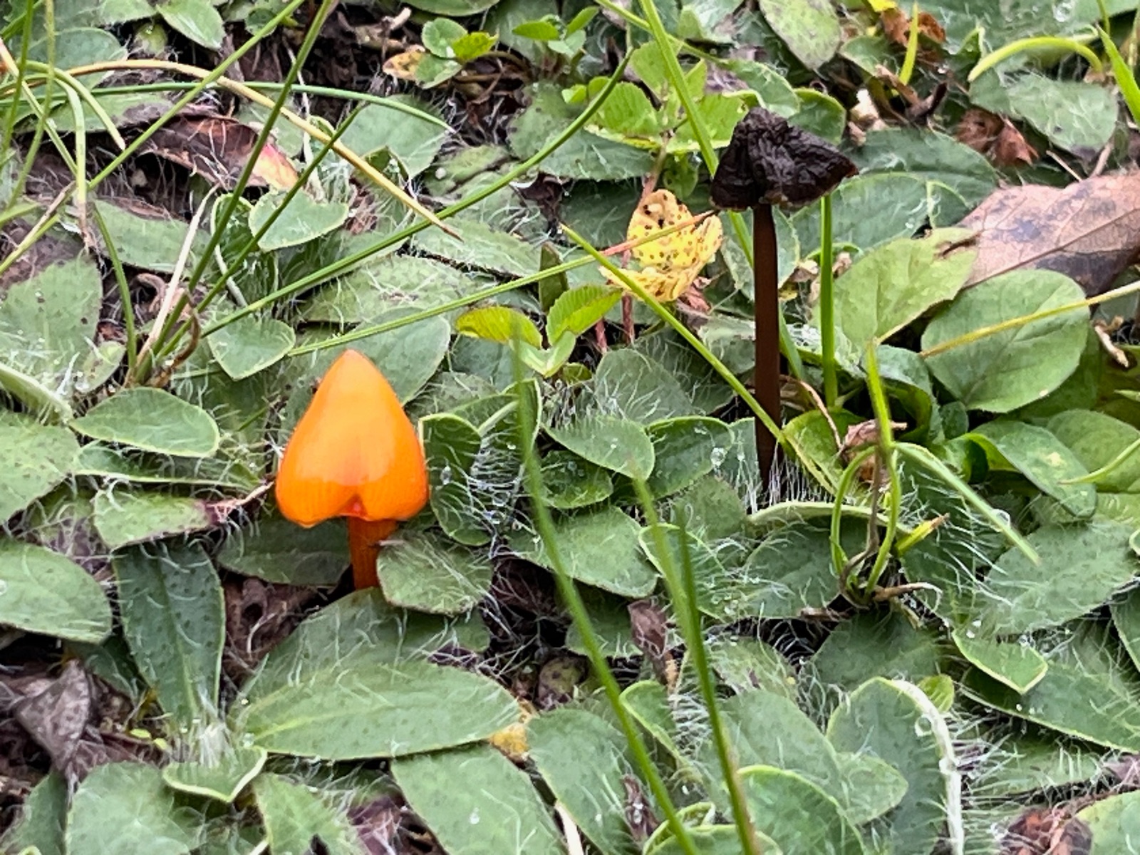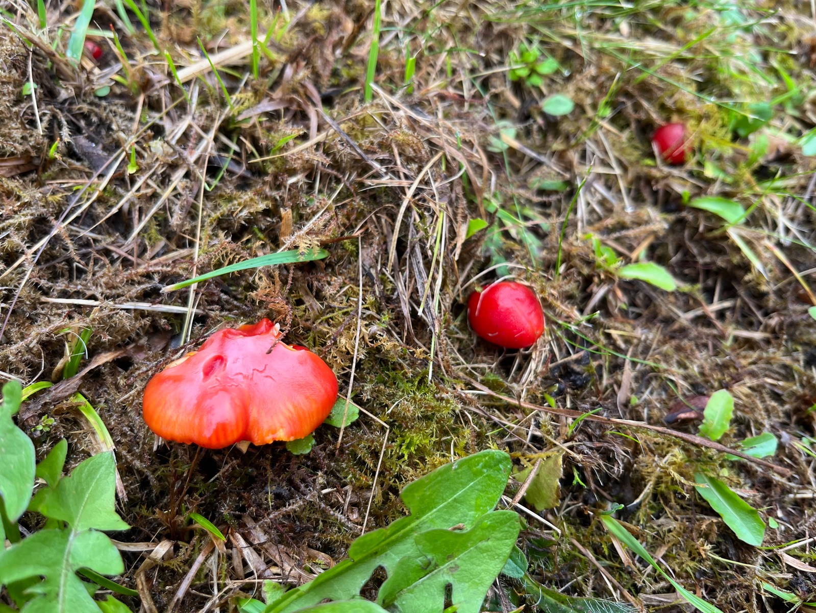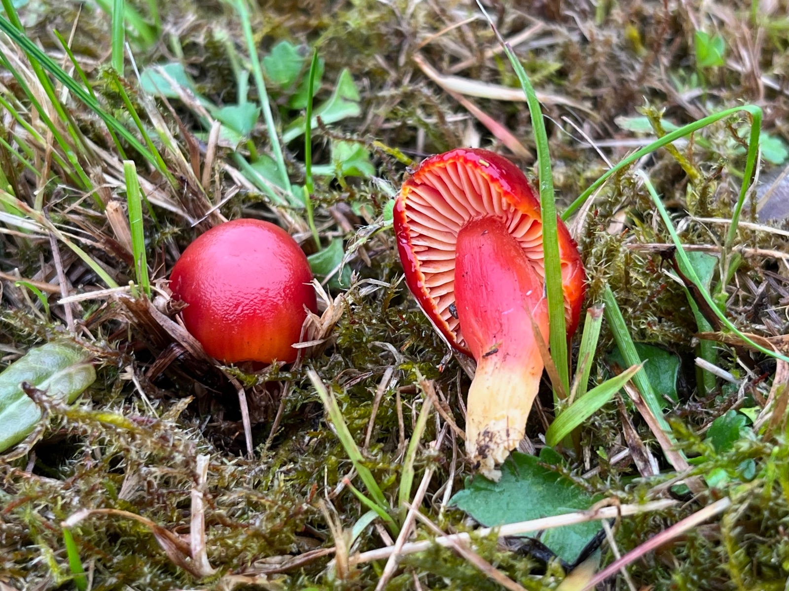 rote Köpfchen und ein Saftling, vielleicht der Kirschrote.