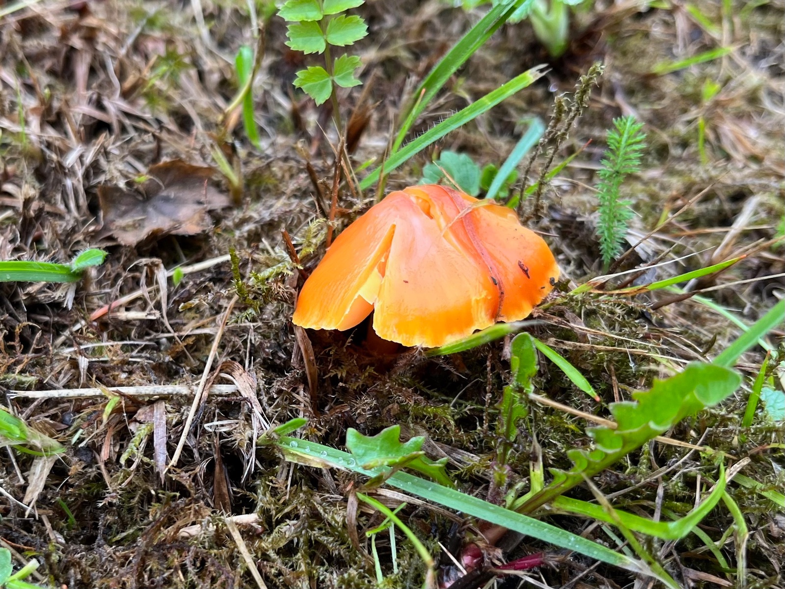 Die Hutfarbe erinnert an H. punicea, aber der Stiel passt nicht. Vielleicht ist das auch die namenlose Rätsel-Hygrocybe.