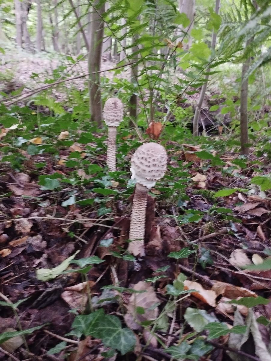 In einem etwas dunkleren Eck im Wald habe ich diese wunderschönen Riesenschirmlinge gefunden. Ich würde aufgrund der Flocken, Stielnatterung und der Färbung in der Hutmitte auf den Parasol tippen jedoch wollte ich die Ringe nicht testen oder den Pilz anschneiden da sie ja sicher noch wachsen.