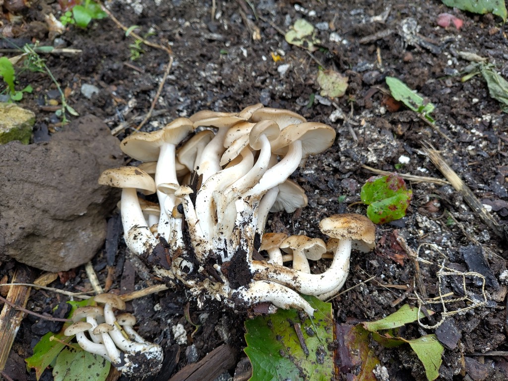 • Auf Erdritterlinge sollte man übrigens auch Acht geben, wenn man Braune / Gepanzerte Büschelraslinge sammelt. Darauf bin ich selbst neulich reingefallen, als es noch etwas trockener war. Die Hutoptik der beiden Arten war auf den ersten Blick 1:1 identisch, weil sie bei den Büschelraslingen leicht aufgerissen war, was dann diese leichte schuppige Optik wie bei den Erdritterlingen erzeugt hat. So kam es dann, dass ich plötzlich ein Büschel Erdritterlinge in der Hand hielt. Dass sie alle einzeln aus dem Boden wuchsen, machte mich stutzig. Geruchsprobe bestätigte dann, dass hier was nicht stimmt. Bei eingehender Betrachtung wurde es dann schnell klar. Beide Arten wuchsen durcheinander.