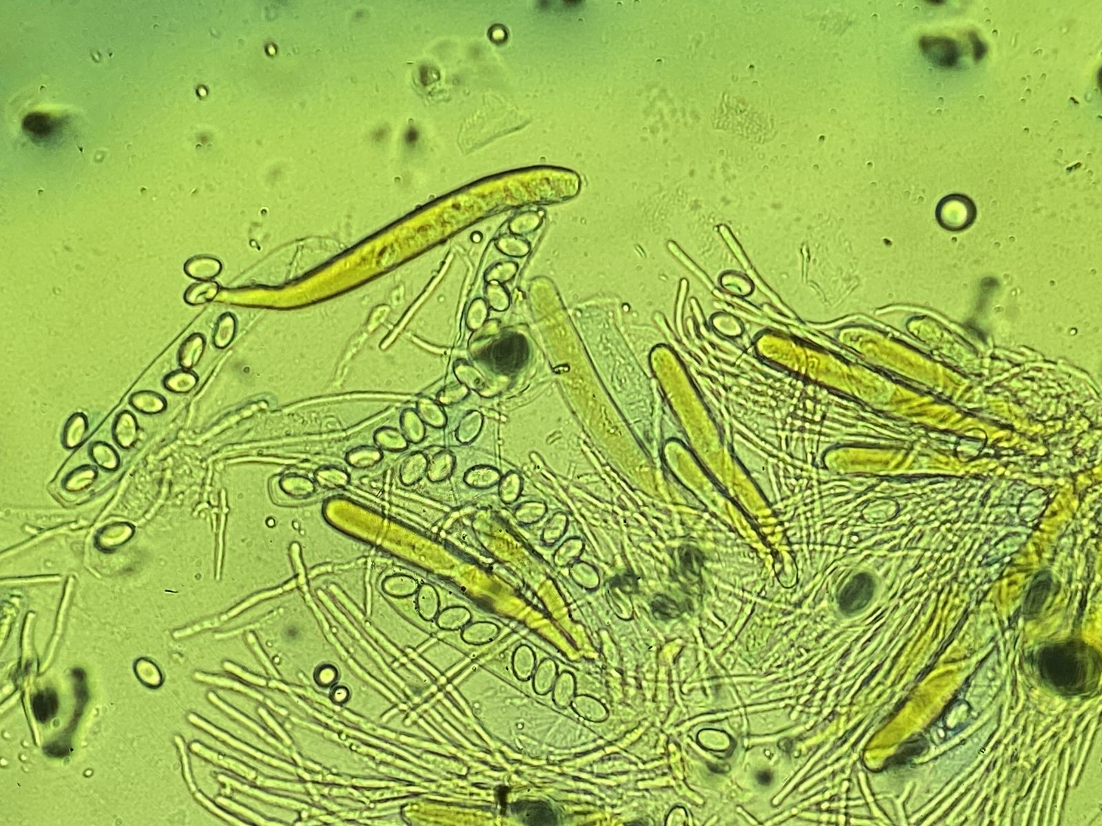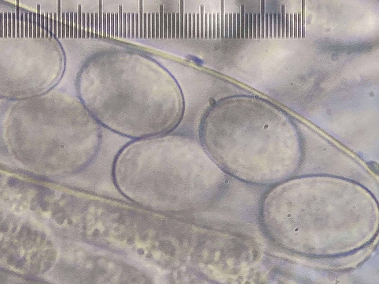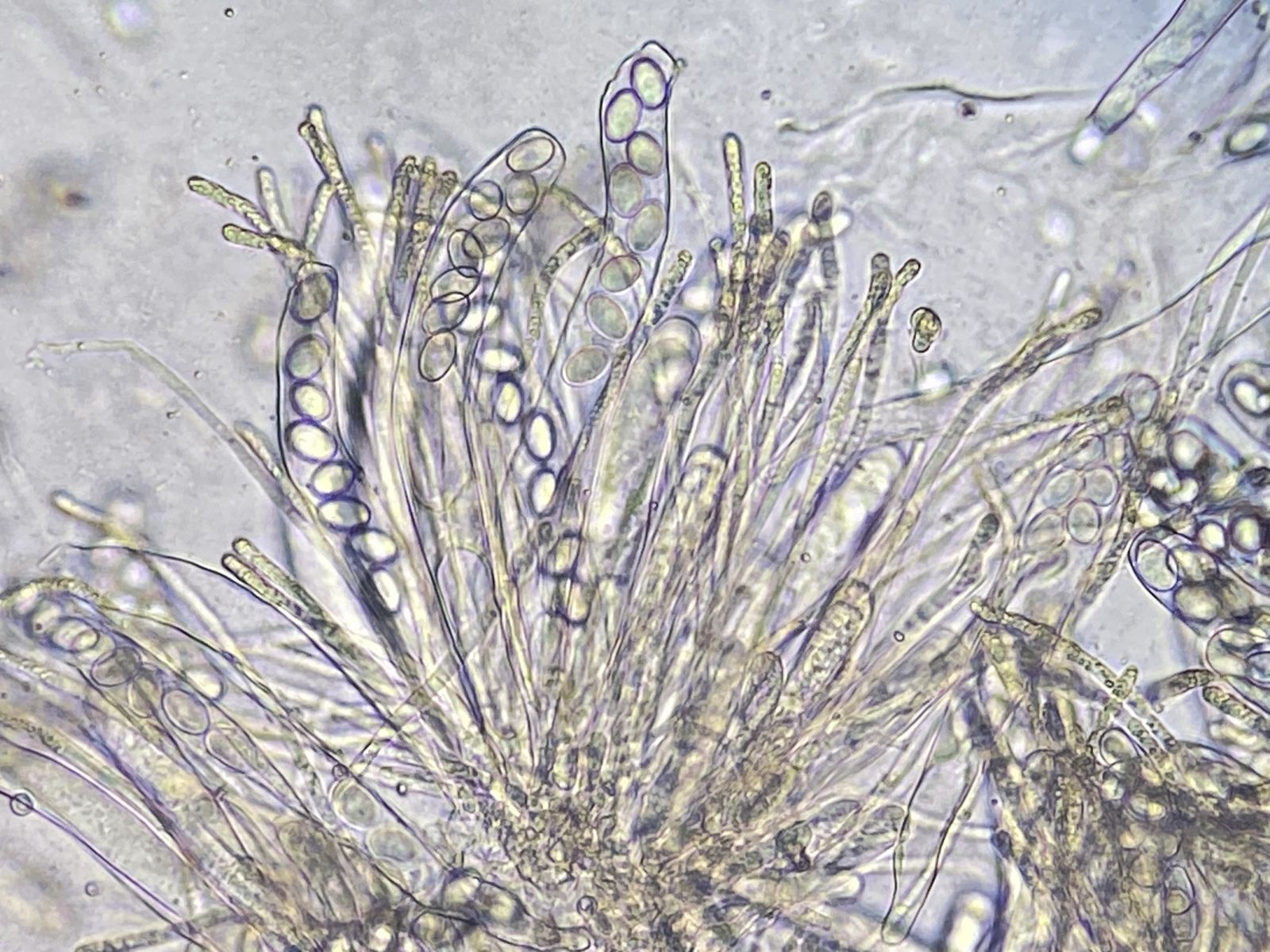 auf Buchen-Fruchthüllen wuchs dieser Ascomycet. Ich nehme an, dass ihn jemand aufgrund seiner Auffälligkeit kennt. Ascosporen 13 x 11-12 µm; Asci 30-40 x 5-6 µm; Paraphysen 30-50 x 0,5-1,2 µm, septiert; Jodreaktion negativ. Ein Rosafarbener Kotling dürfte wohl nicht infrage kommen.