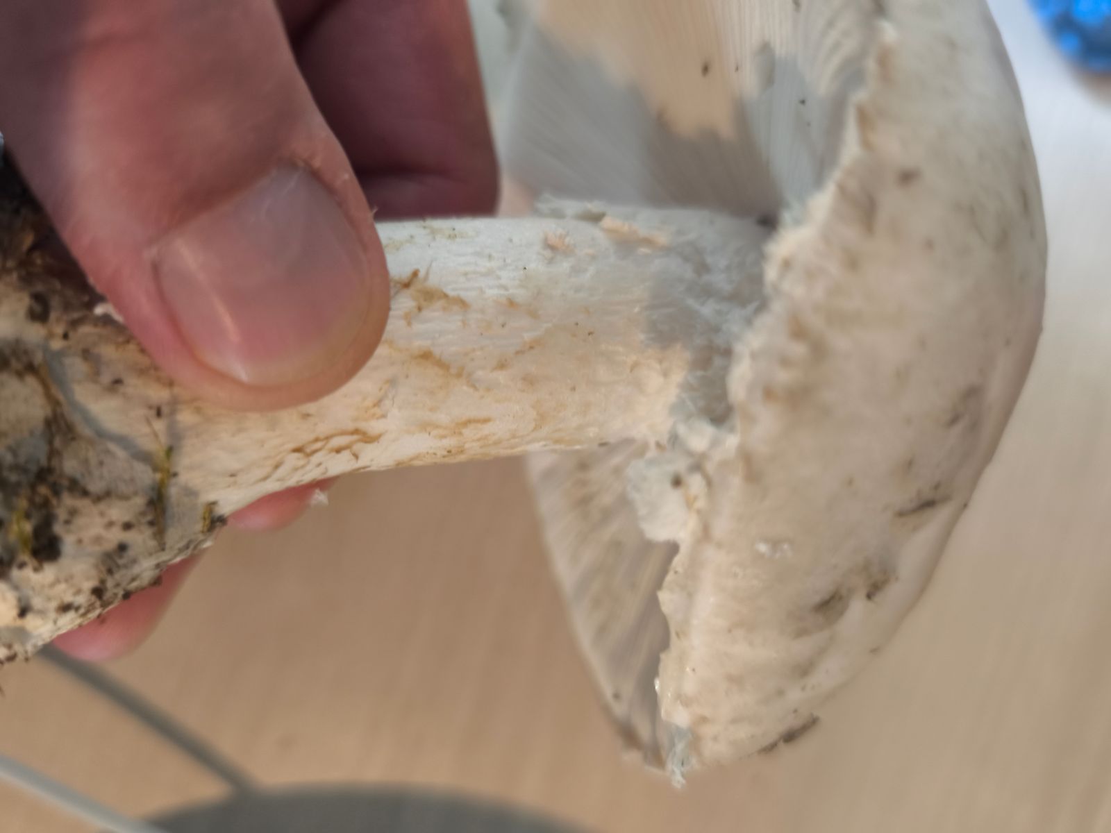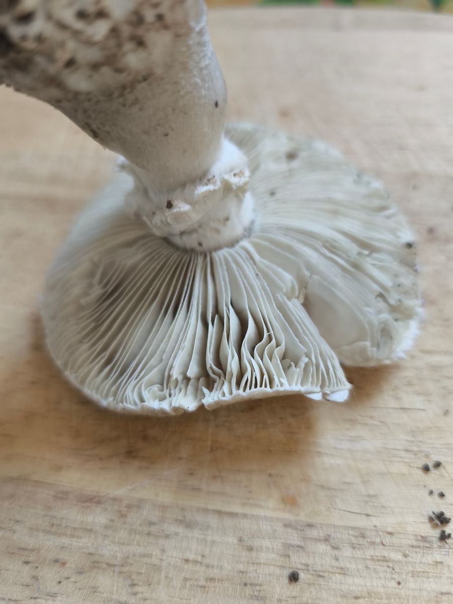 Man könnte auch mal mit dem Igel-Wulstling (A. echinocephala) vergleichen. An der Knolle kann man noch die spitzen Schuppen erkennen. Und die Lamellen scheinen auch einen Grünstich zu haben.