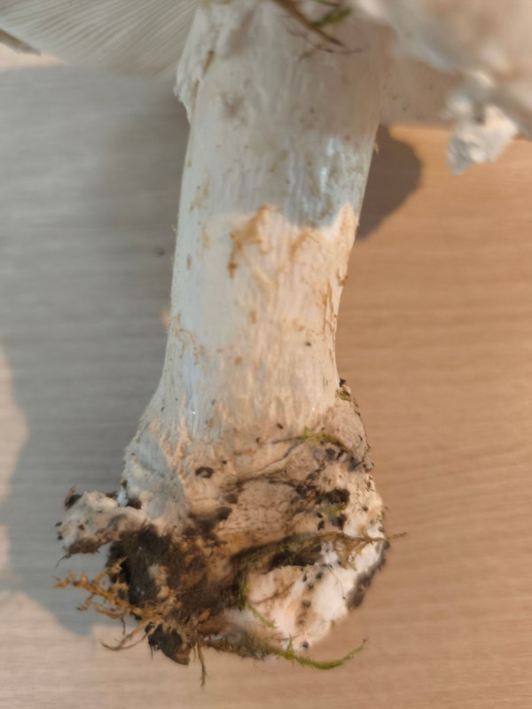 Etwas dürftig die Information, war der Ring gerieft? Welche Form hat die Knolle? Pilze sind keine Pflanzen und haben keine Wurzel. Das nennt sich Stielbasis! Also, wenn möglich, bitte noch Fotos nachreichen.