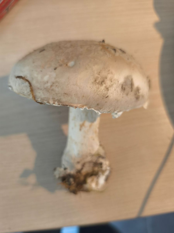 wir haben diesen Pilz hier gesehen und uns gefragt ob es ein grauer Wulstling ist? Unten mit Lamellen und einem Ring, Wurzel ist Knollenartig. Nebenan ist eine Winterlinde.