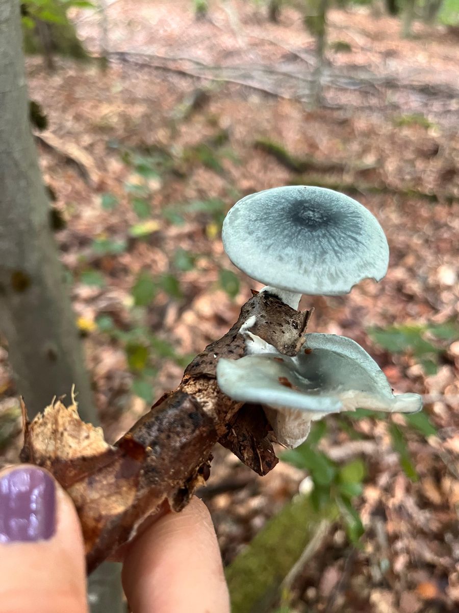 Hallo diese unglaublich schönen Pilze hab ich letzte Woche im Taunus bei Buchen an einem herabgefallenen Ästchen gefunden. Die Farbe ging von blau ins gräuliche. Leider habe ich keine besseren Bilder.