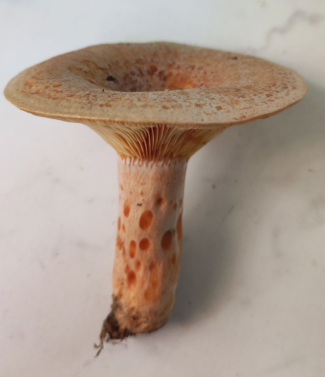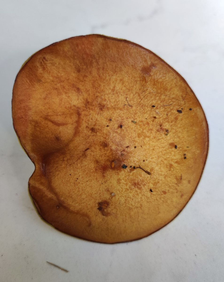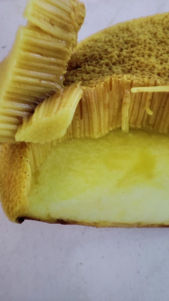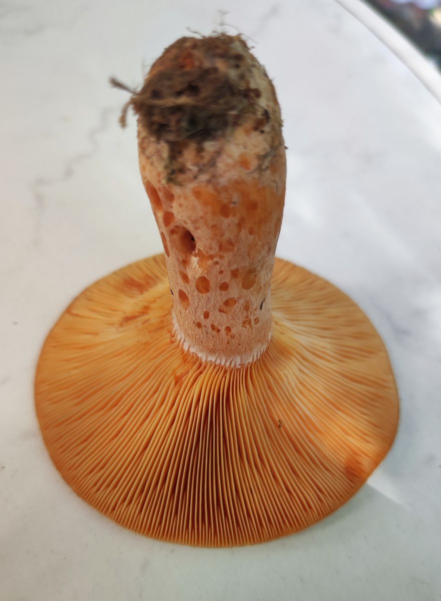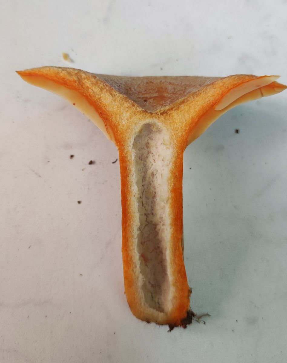 Beim Verletzen der Lamellen trat keine Milch aus, es wurde nur so etwas orange. Vllt war er schon zu alt, aber nachher waren meine HĂ€nde und das Messer voller quietschoranger Flecken.