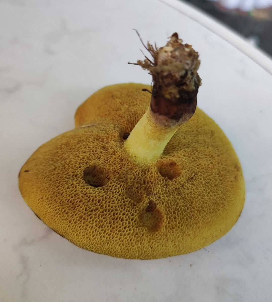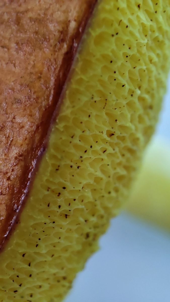 Zu Hause machte ich dann Detailfotos der mitgebrachten FK, und nach einem "Ausflug" ĂŒber den Goldporigen Röhrling kam ich - nachdem ich mir die Stielspitze genauer angeschaut hatte - zum Körnchenröhrling.