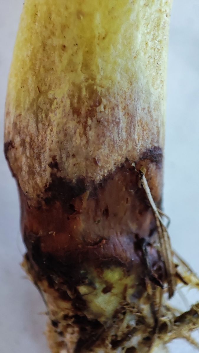 Stielbasis allerdings bis zu ca. 1/3 des Stiels dunkel braunrot.