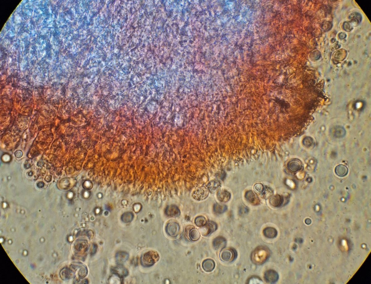 erneuter Versuch, nunmehr ist erkennbar, dass die Cheilozystiden eigenlich mollig sind, aber mit vielen Fingern besetzt sind