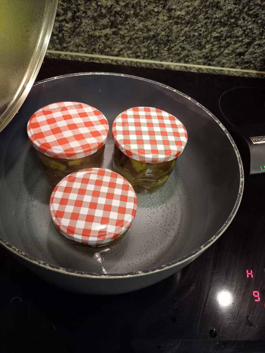 Damit ein Vakuum entsteht, koche ich die Gläser noch ca. 10 Minuten im Wasserbad. Danach nehme ich sie raus und stelle sie 5 Minuten auf den Kopf bevor ich sie umdrehen und auf den "Knacks" warte.. halten bis zu 1 Jahr ,vielleicht auch länger - kann ich nicht sagen, sie waren einfach lecker.