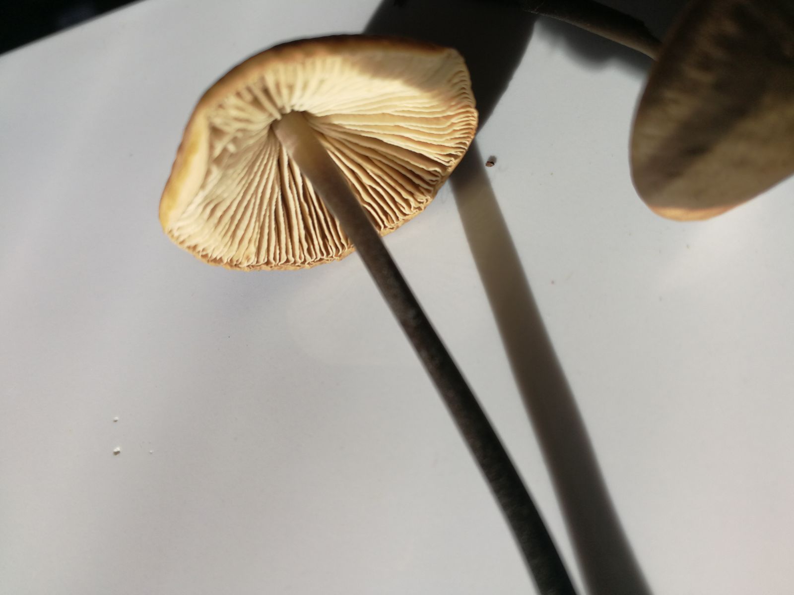 Der Stiel ist recht zäh, fühlt sich glatt an. An der Stielspitze ist eine weiße Bereifung zu erkennen. Die Stielbasis ist leider nicht mehr dran.