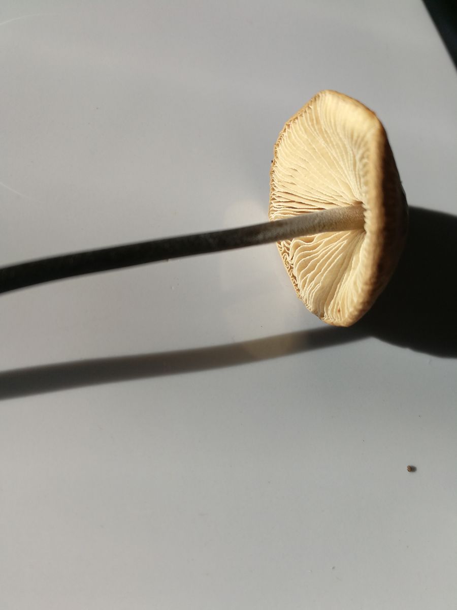 Die Lamellen sind hellbraun bis schmutzig beige. Lamellen stehen recht dicht, wenn ich das richtig interpretiert habe, sind Zwischenlamellen vorhanden.