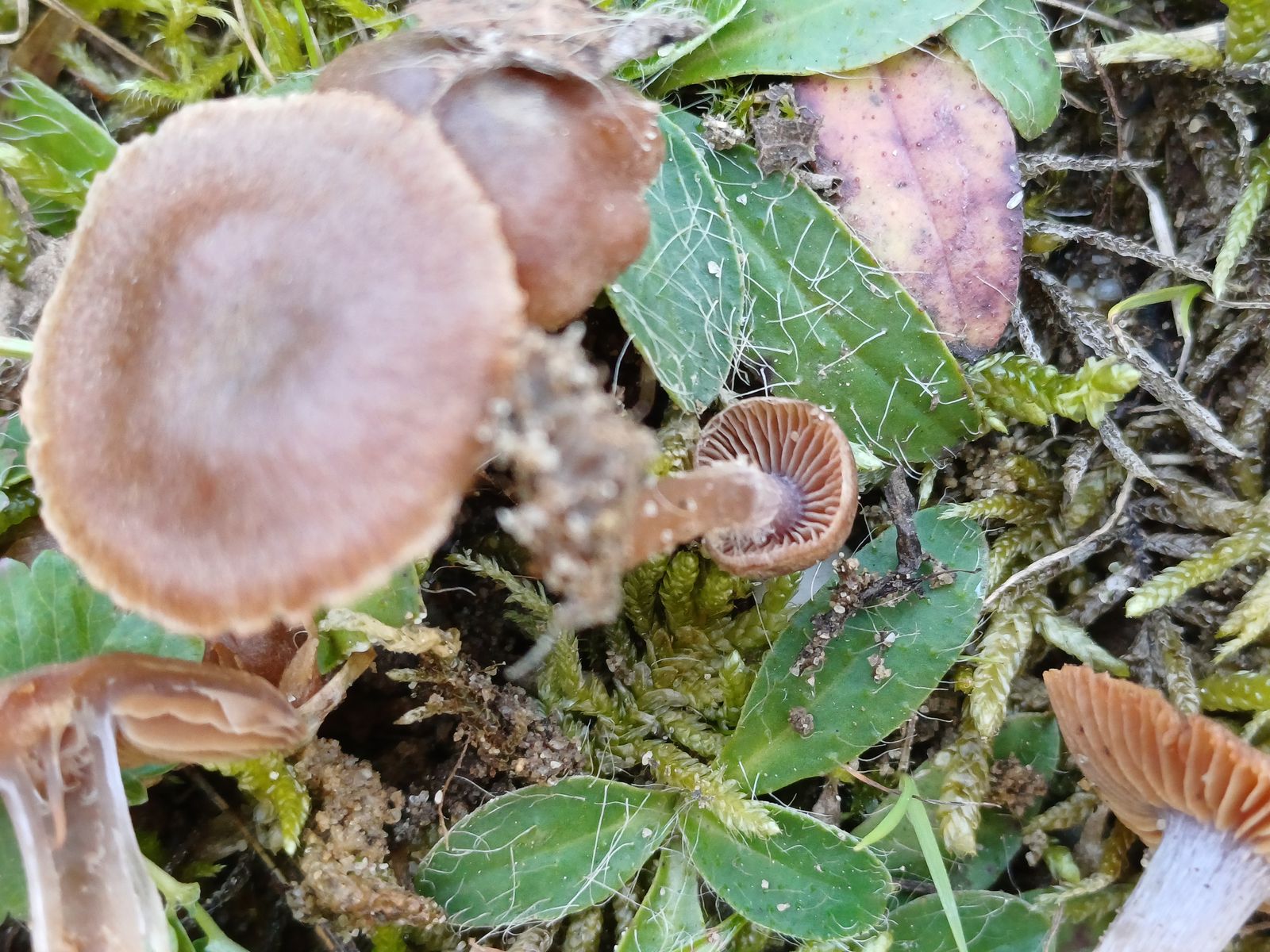Es sind kleine (Hutdurchmesser bis etwa 3 cm, eher kleiner, Stieldurchmesser ca. 2 mm) braune Pilze ohne Geruch und mit lila/fliederfarbener Stielspitze. Die Hutoberfläche ist ganz leicht faserig, das Velum ist weißlich.