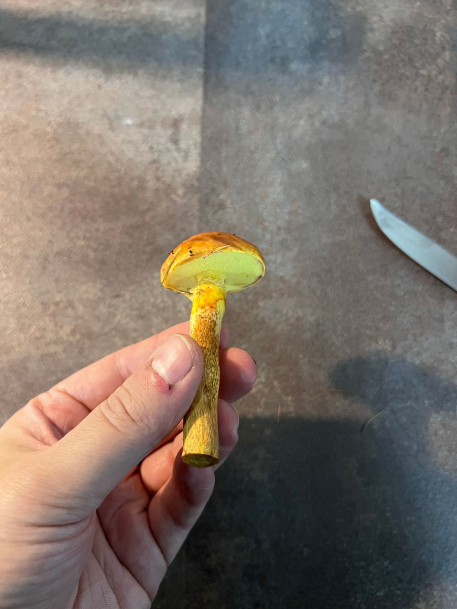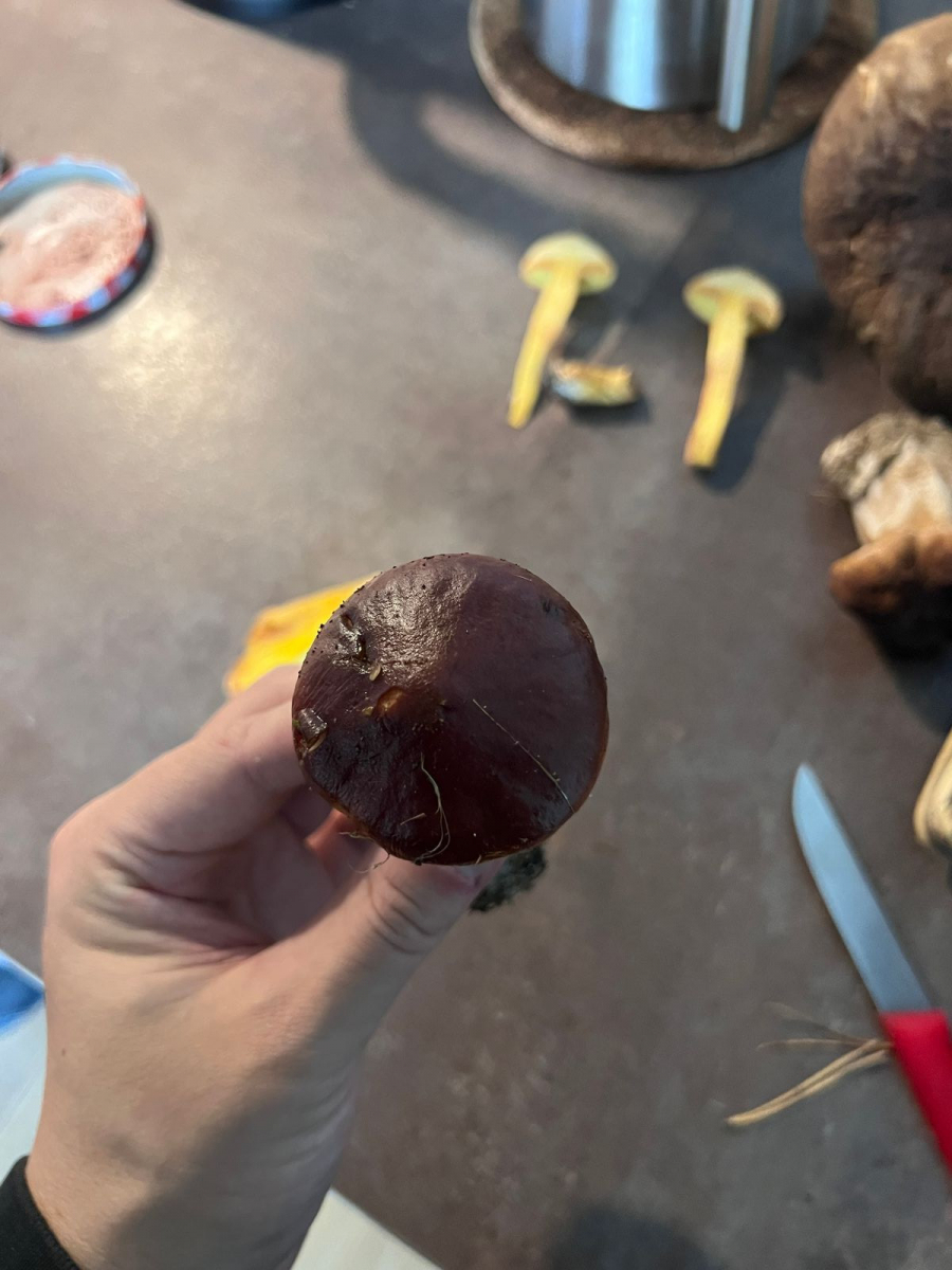 ich wollte heute mal meinen Horizont erweitern und habe für mich neue Gefilde erkundet. Dabei habe ich auch Pilze gefunden die ich nicht ganz zuordnen kann. Da es sich um Röhrlinge ohne Netzzeichnung am Stiel handelt, habe ich sie mal mitgenommen. Von irgendetwas muss man sich schließlich ernähren. ![]()