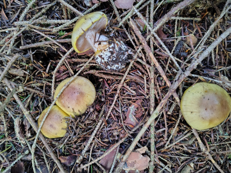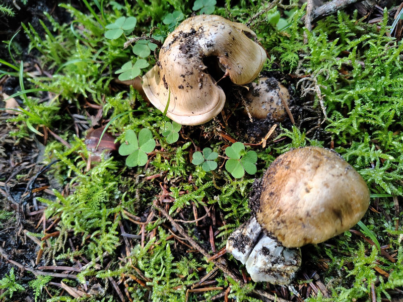3. Ein Phlegmacium mit so tief im Boden steckender Knolle dass ich sie bei 3 Fruchtkörpern nicht rausbekommen habe. Danach habe ich mich schlecht gefühlt und die anderen 2 stehenlassen. Farben fälblingsähnlich, Könnte das Richtung C. corrosus gehen? Braucht man wahrscheinlich die Sporen oder?