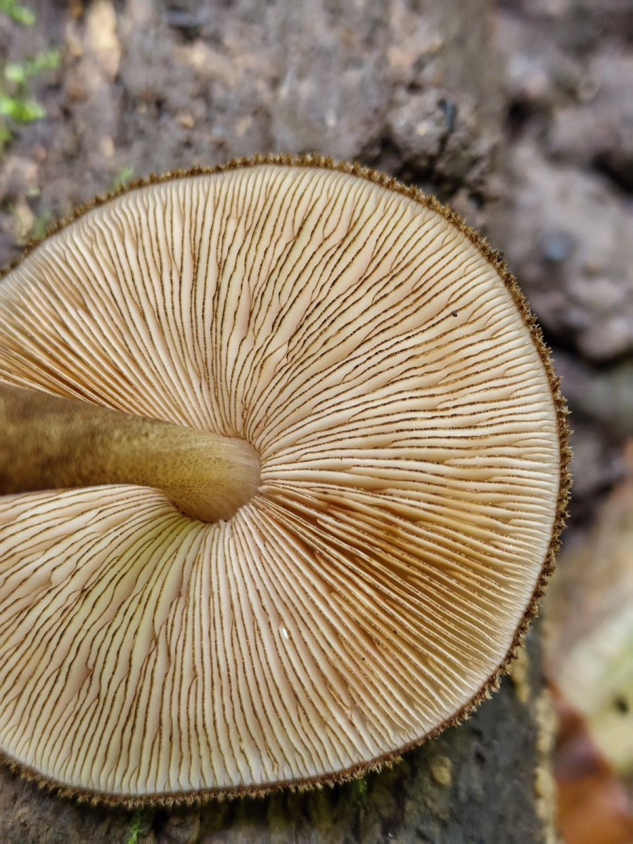 Aufgrund des flockigen statt längsfaserigen Stiels und der aderig-runzeligen Huthaut bin ich hier bei P. umbrosus gelandet und nicht atromarginatus, der ebenfalls dunkle Lamellenschneiden hat. Substrat war am ehesten eine Buche, aber schon ziemlich verrottet. Kann man den als P. umbrosus eintüten? Danke!