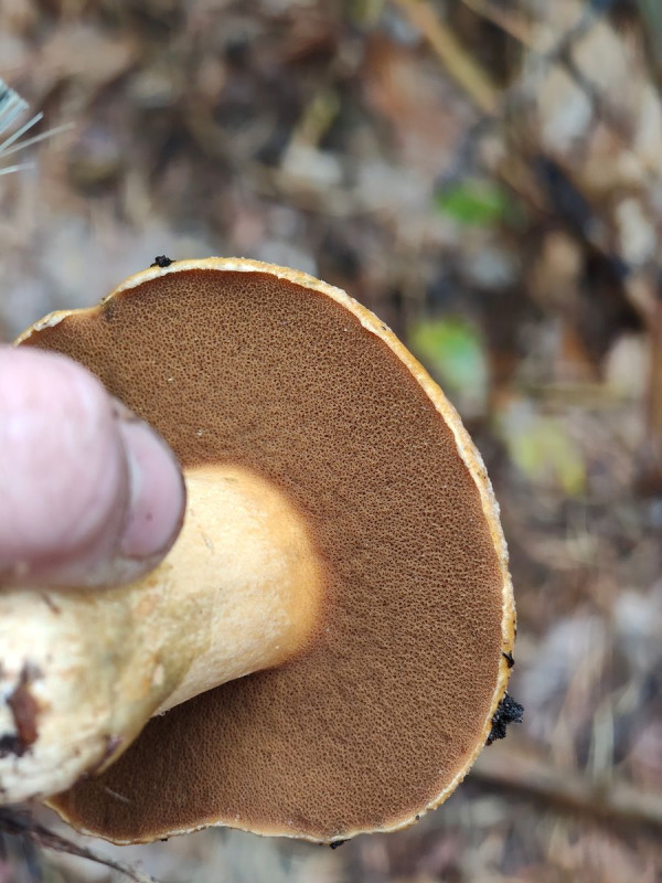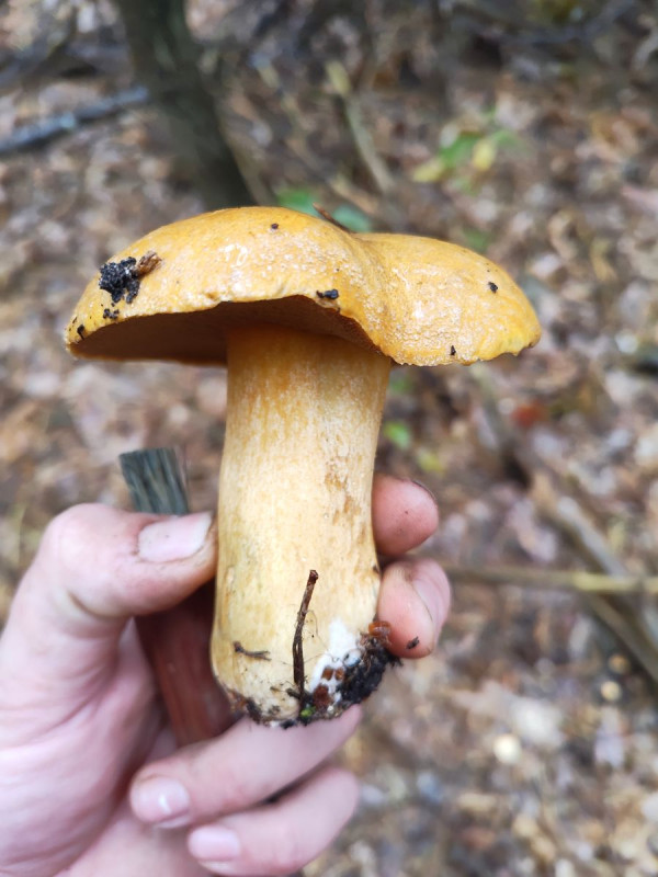 Hallo ich habe folgenden röhrling gefunden, sein Hut ist rutschig aktuell Regnet es den ganzen tag, nach dem Anschneiden hat er direkt gebläut die röhrenschicht läuft ganz wenig am Stiel herunter, hut und stiehl sind festFundort und bilder füge ich hinzu,