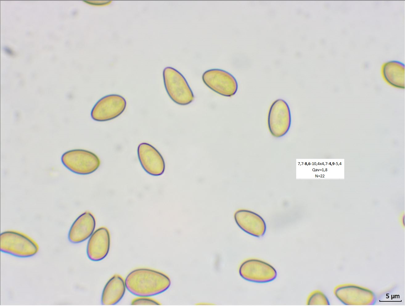 Die Sporen sind zu klein für A. pediades, mit sehr undeutlichem Keimporus, daher denke ich, dass ich hier A. vervacti eingesammelt habe: