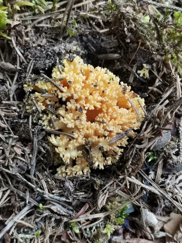 Hallo gibt es eine Möglichkeit diese ramaria zu bestimmen ich finde keine Sporen und ich fand sie in einem nadelwald bei Kiefer lg sie ist goldgelb