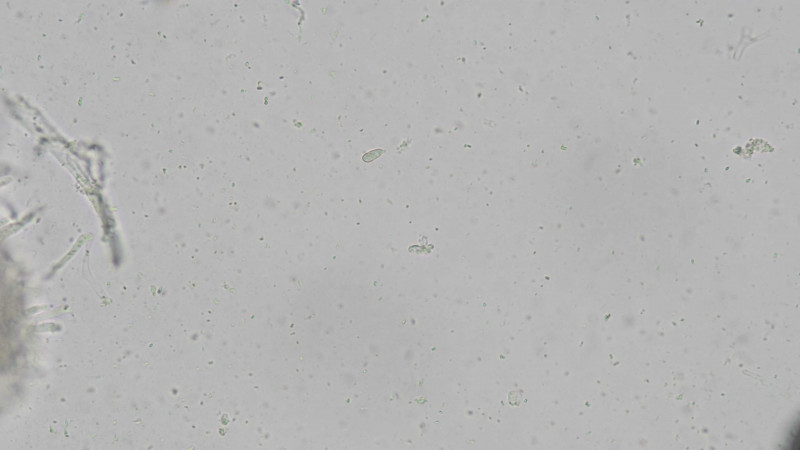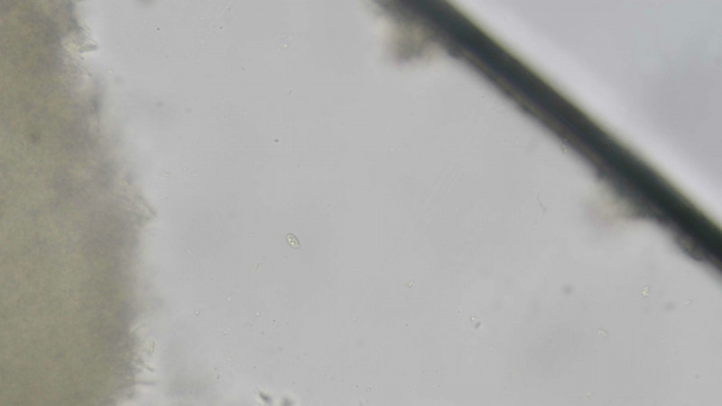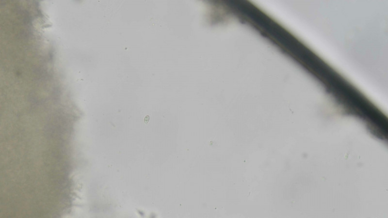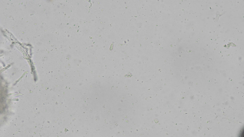 I probier jetz immer die Sporen zu finden aber des Teil is richtig arschig I hab jetz den Strunk untersucht und sehe da Kristalle oder lg und die Sporenmessungen liegt zwischen 8 bis 13