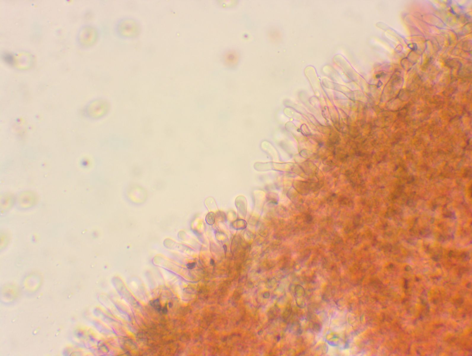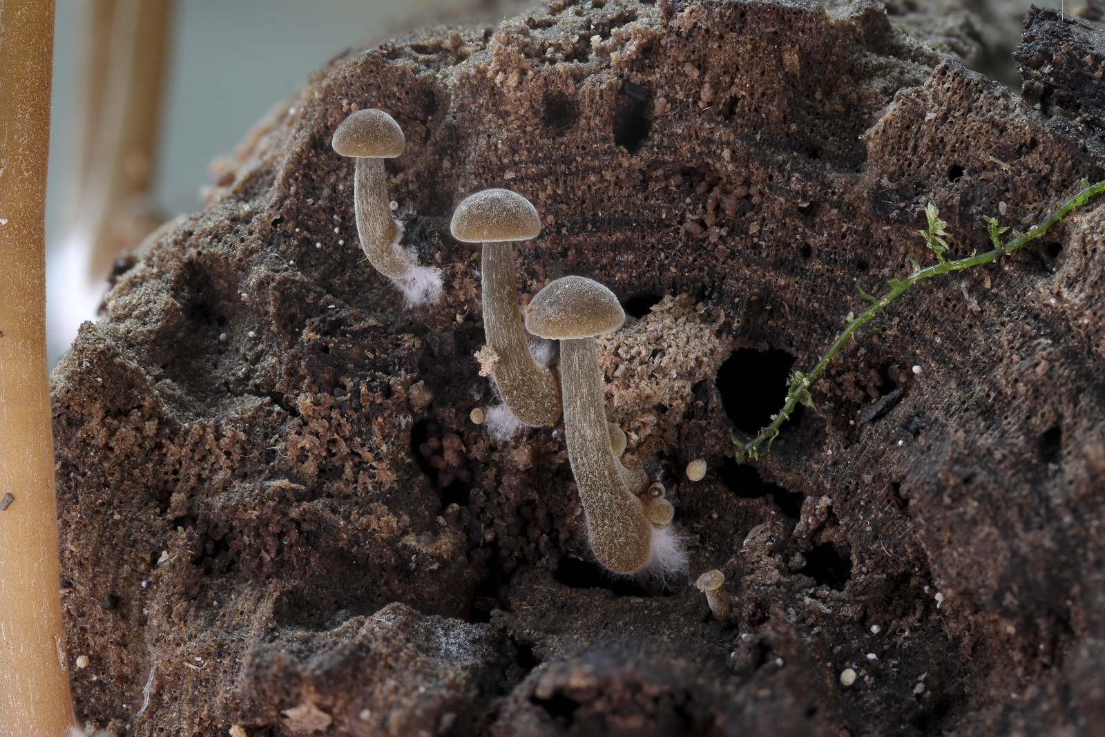 Gestern hatte ich auf morschem Laubholz mal wieder eine Simocybe eingesackt - bisher war jede Simocybe bei mir S. sumptuosa, aber dieses mal habe ich denke ich S. centunculus erwischt.
