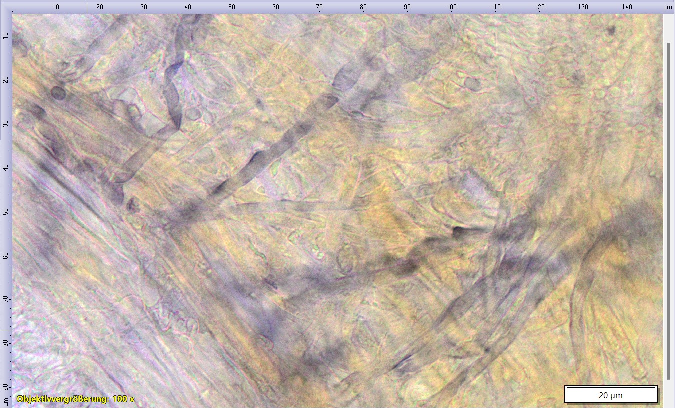 Ausserdem gelang es mir die Skeletthyphen recht gut sichtbar zu machen mit Melzer.