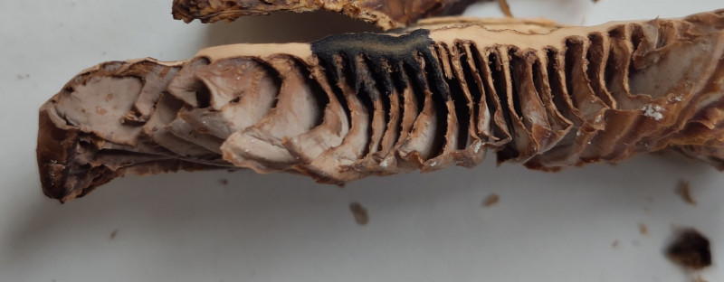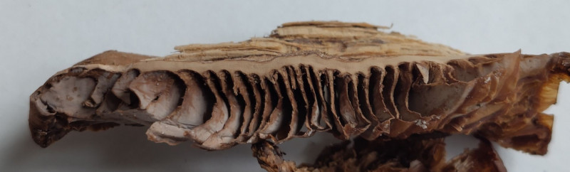 Gemäss Nobis Definition im Beitrag von 2020 hätte ich wohl einen Lentinus ursinus gefunden. Der Geschmack ist scharf, doch er wuchs auf Nadelholz. Gemäss anderen Interpretationen wäre es wohl ein L. castoreus, weil er auf Nadelholz wuchs.