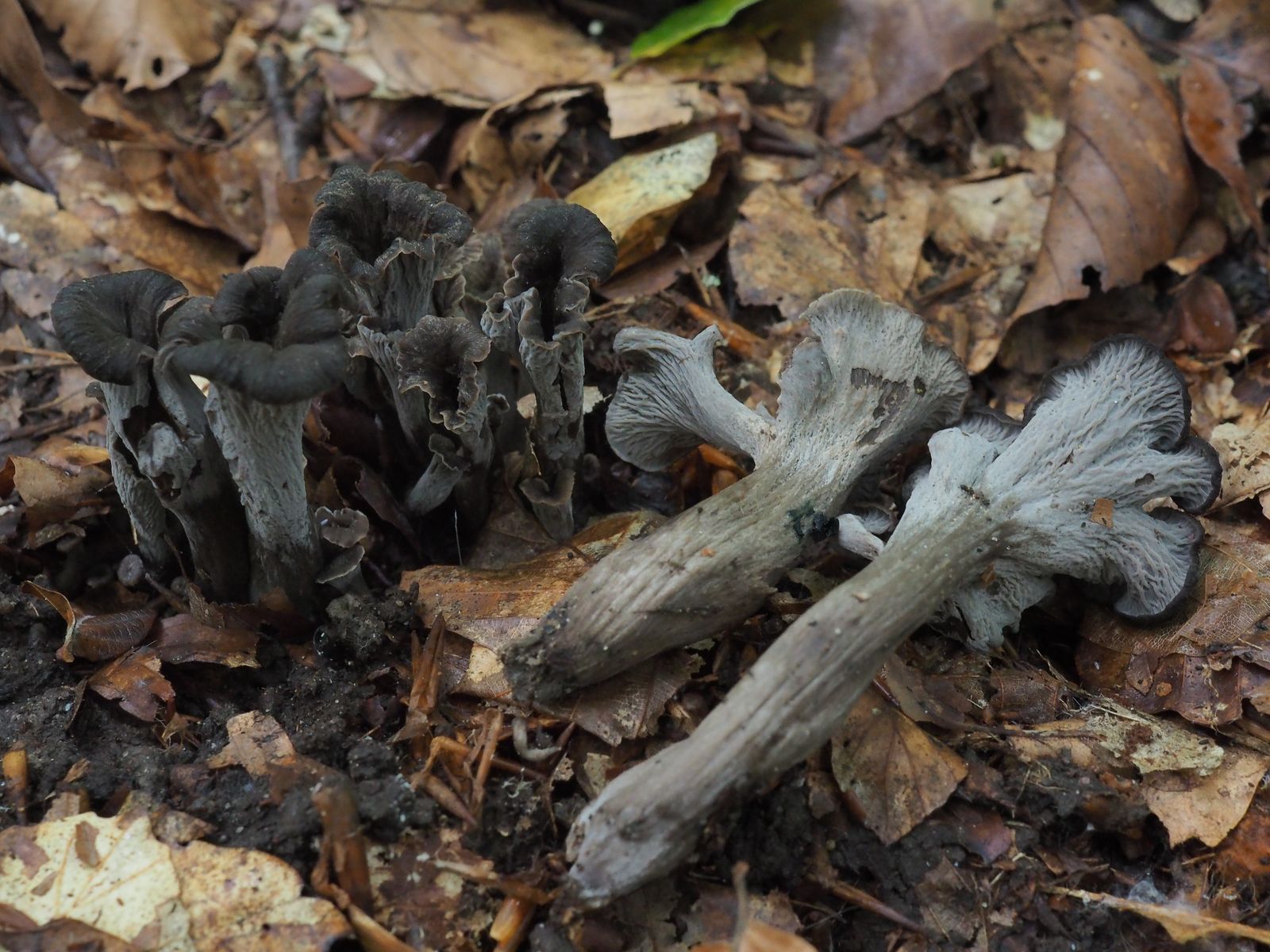 12. Bei guten Bedingungen immer in großer Zahl im ganzen Gebiet vertreten, der Schwärzende Leistling - Craterellus melanoxeros