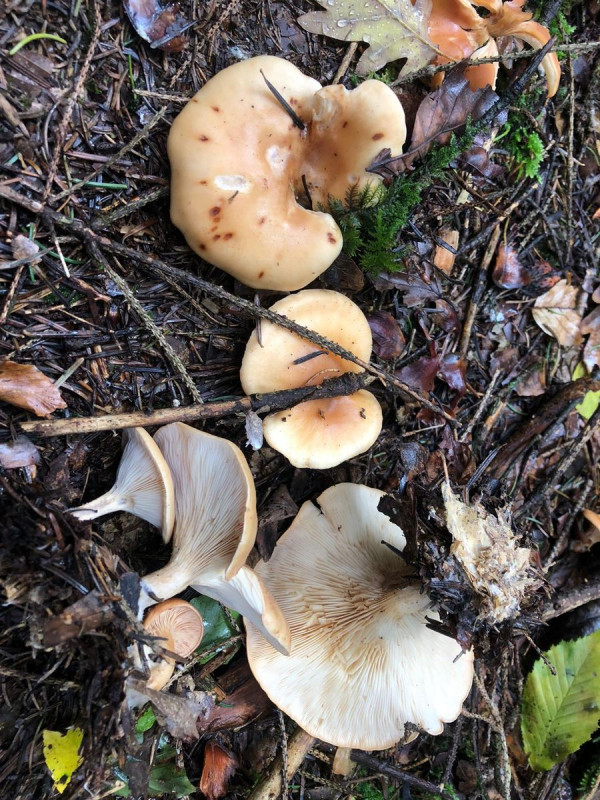 8. Olivbrauner Milchling (Milch war zunächst weiß, die Verletzung färbte sich dann braun beim Abtrocknen), Fichten mit einer Buche