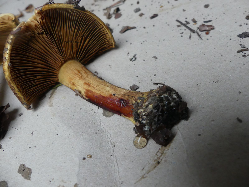 Cortinarius alcalinophilus, der mit seinem Wachstum direkt am mit Basaltschotter belegten Waldweg sich ein besonders basisches Plätzchen für das Wachstum ausgesucht hat.