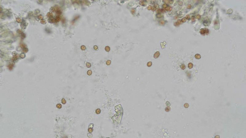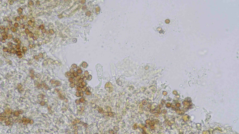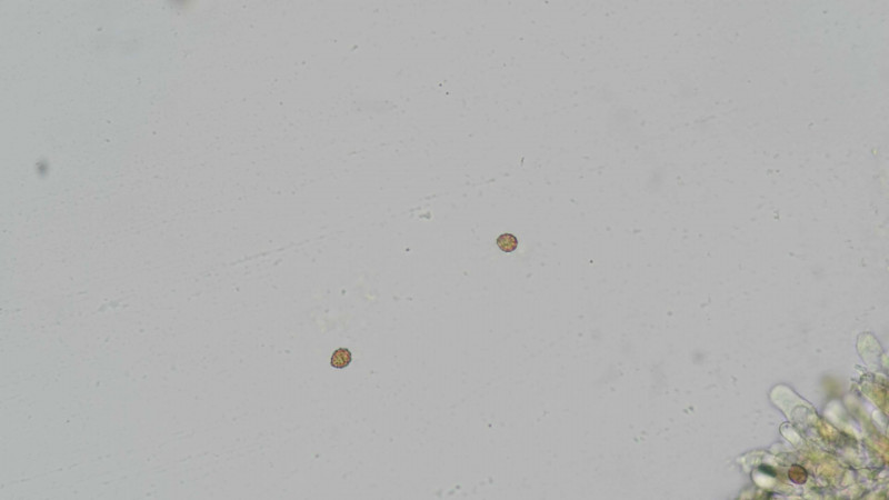 Da ist wohl irgendwo auch ein alter Cortinarius venetus dabei, der wird im Alter schnell braun. Zumindest das unscharfe Bild mit der gelblichen Stielbasis könnte einer sein. Das würde die subglobosen Sporen erklären.