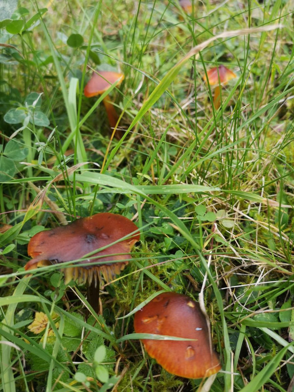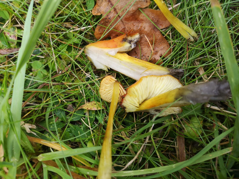 ich glaube, den schwärzenden Saftling auf meiner Wiese (denke Magerwiese?) hinterm Haus gefunden zu haben. Dort wuchsen in der Vergangenheit bereits Schopftintlinge und irgendeine andere Art Tintlinge.