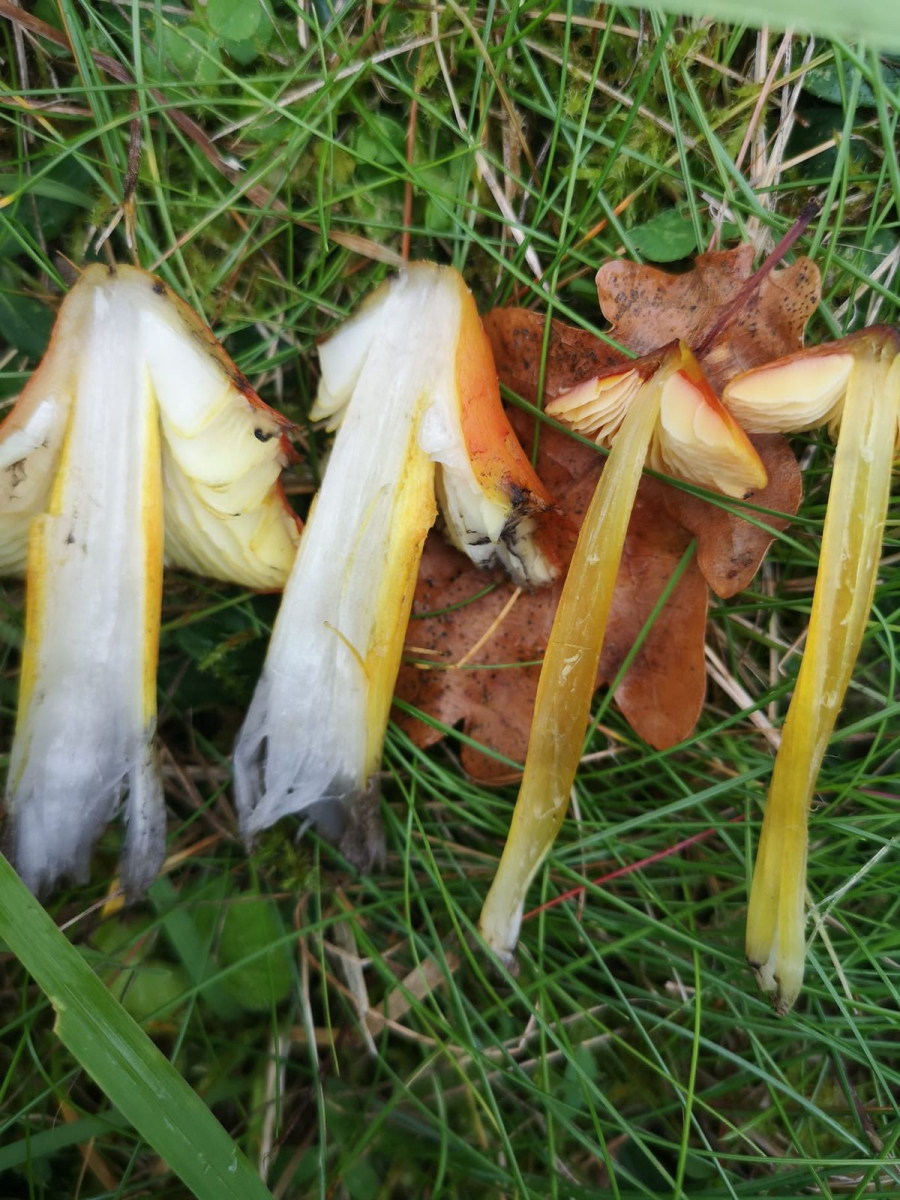 ich glaube, den schwärzenden Saftling auf meiner Wiese (denke Magerwiese?) hinterm Haus gefunden zu haben. Dort wuchsen in der Vergangenheit bereits Schopftintlinge und irgendeine andere Art Tintlinge.