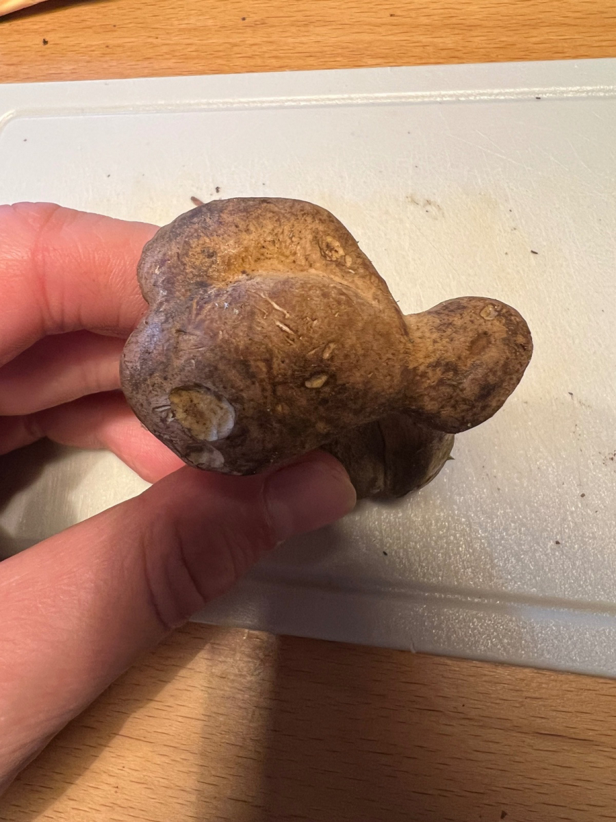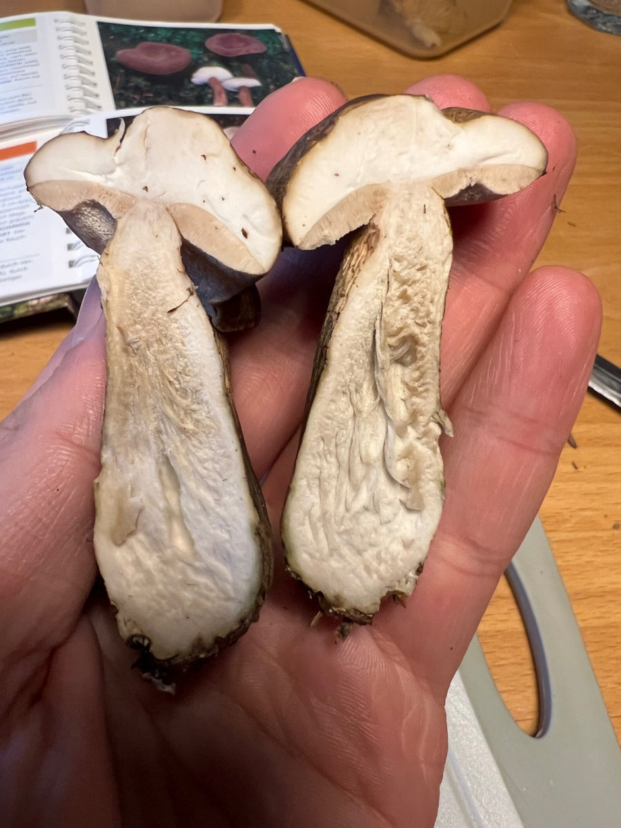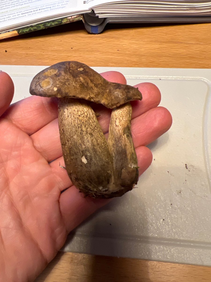 Kann mir jemand bitte helfen, was für ein Pilz das ist? Ich habe ihn in einem Fichtenwald mit Hanglage (Südschwarzwald) an manchen Stellen bemoost, aber auch manchmal nur Erde, gefunden.