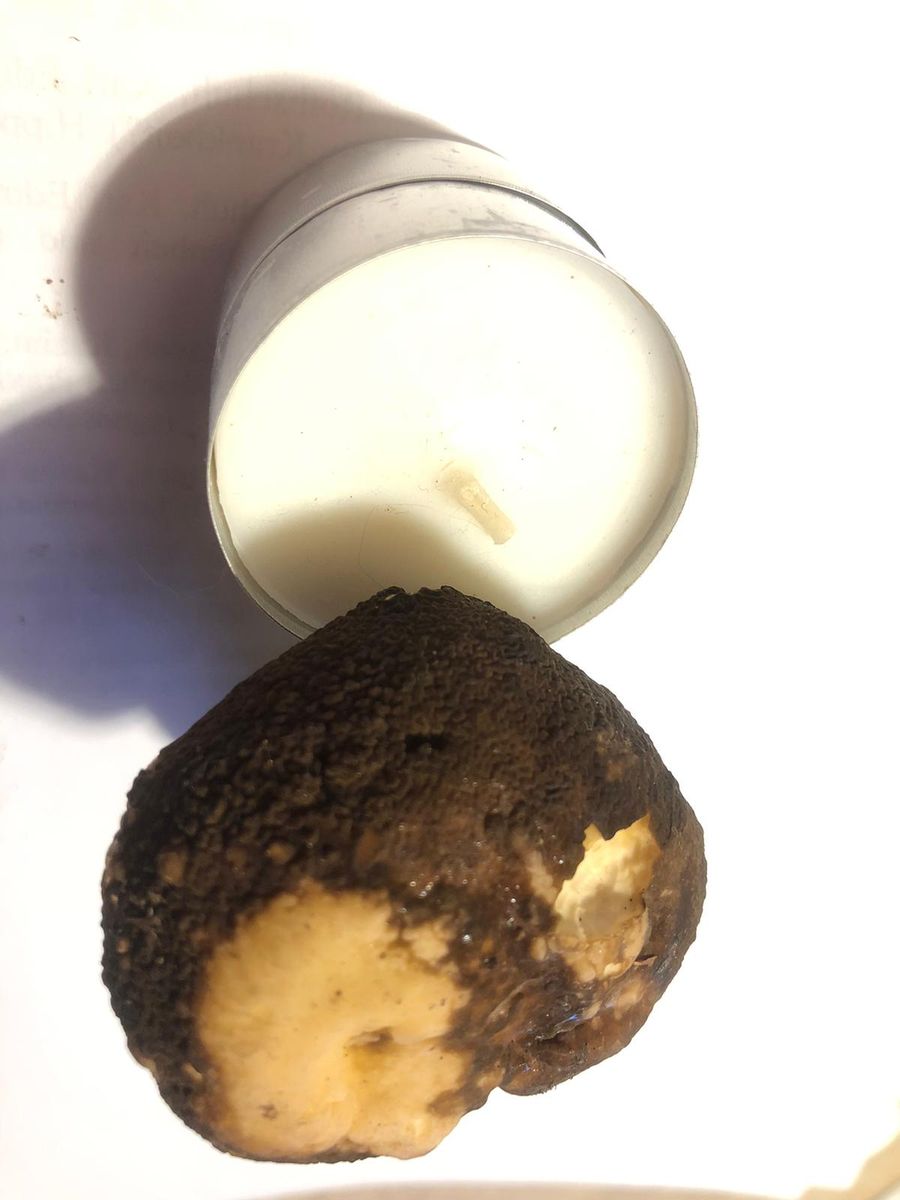 ) aber die kleinen Pilze waren sehr fest in Hut und Stiel. Trockenschäden kann man definitiv ausschließen, bei mir hat es fast jeden Tag geregnet die letzte Zeit. Die Huthaut sieht aus als hätte man Zucker karamellisiert, so blasig als wär sie geschmolzen und wieder abgekühlt oder so Krötenhautartig. Ich rieche nichts spezielles, pilzig-erdig trifft es vermutlich am Besten. Mitgenommen habe ich die zwei Kleinen.