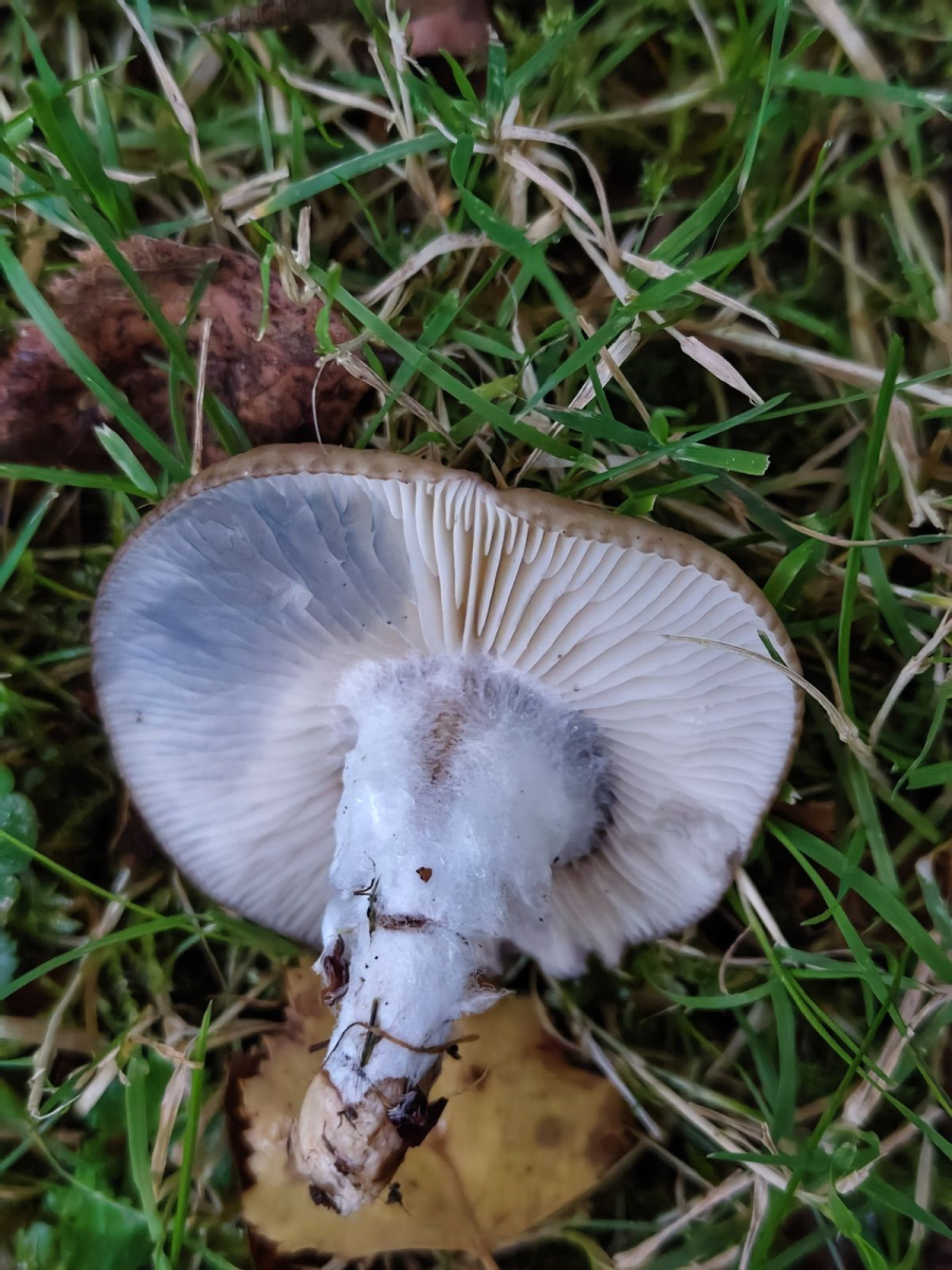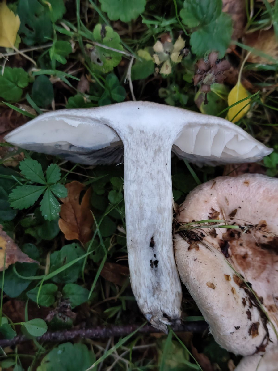 Lamellen: weiß, ausgebuchtet angewachsen, blauend/schwärzend