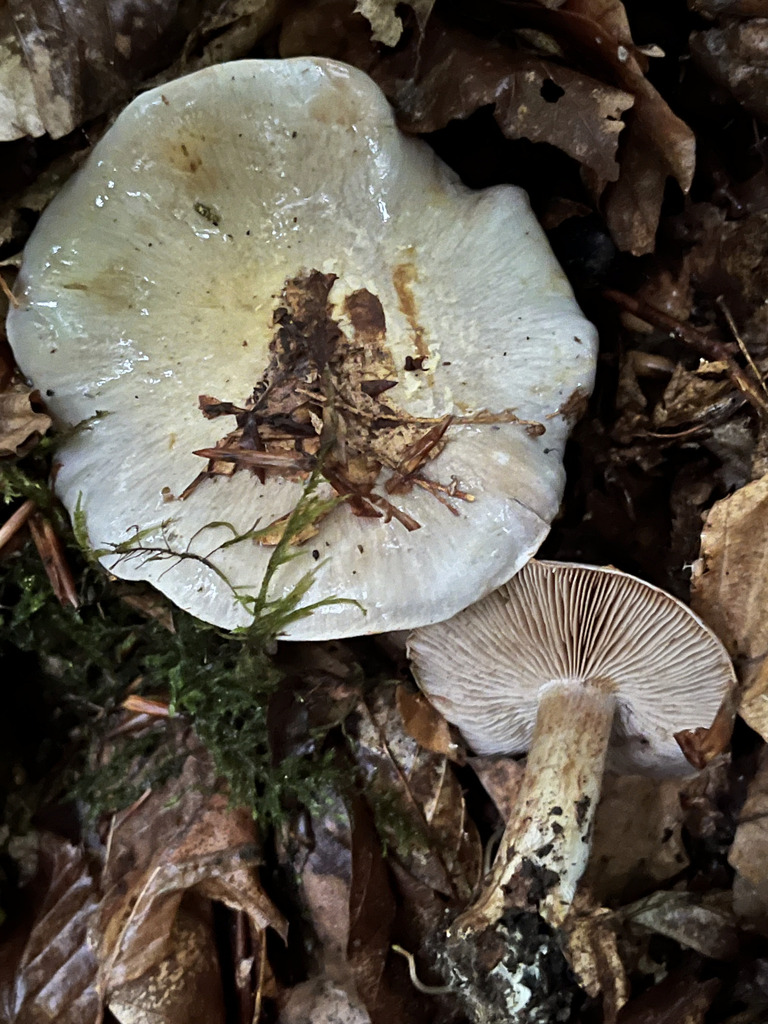 Die Farben auf dem Bild sind durch den sehr dunklen Wald stark verfälscht. Der Pilz sah ziemlich nach caerulescens aus, die Farben sind stark verfälscht (Grautöne hatte der definitiv nicht). An dem Tag gab es tiefhängende Wolken, die mehrfach Sprühregen brachten.