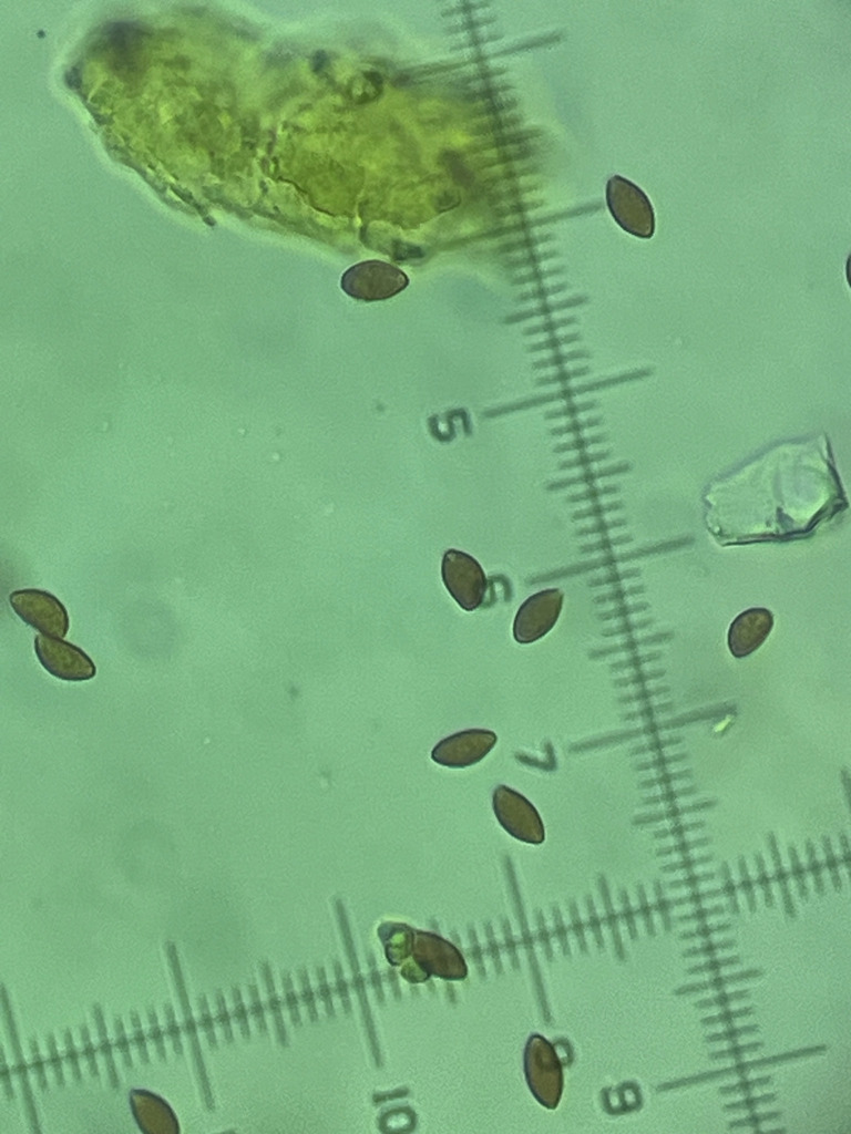 Die durchschnittliche Sporengröße meines Fundes lag bei 9,43 x 5,64 (9-10 x 5-6). Ich habe mit der 1000x Vergrößerung sehr genau gemessen. Cortinarius mairei hat laut Literatur Sporen von 9,2 - 9,6 x 5,4 - 5,6 (8,5-10,5 x 5,0 - 6,0) Mikrometer. Das passt sehr gut zu meinen Messungen. Die Sporen von Cortinarius caerulescens sind mit 8,7 - 9,0 x 4,9 - 5,0 (8,0 - 10,0 x 4,5 - 5,5) eine Ecke kleiner. Die Kombination dieser Merkmale führt mich bei meinem Fund zu Cortinarius mairei.