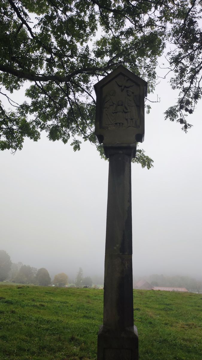 Hier ein Marterl; Bäume und Bauernhofgebäude kann man noch erahnen...