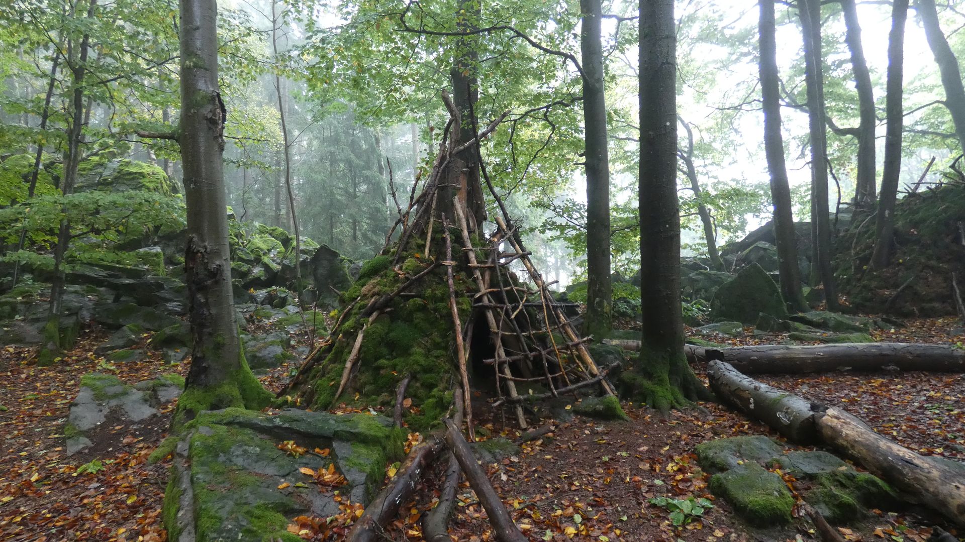 Auf jeden Fall komische SteintĂźrmchen und Tipis und HĂźtten aus Holz und Moos...