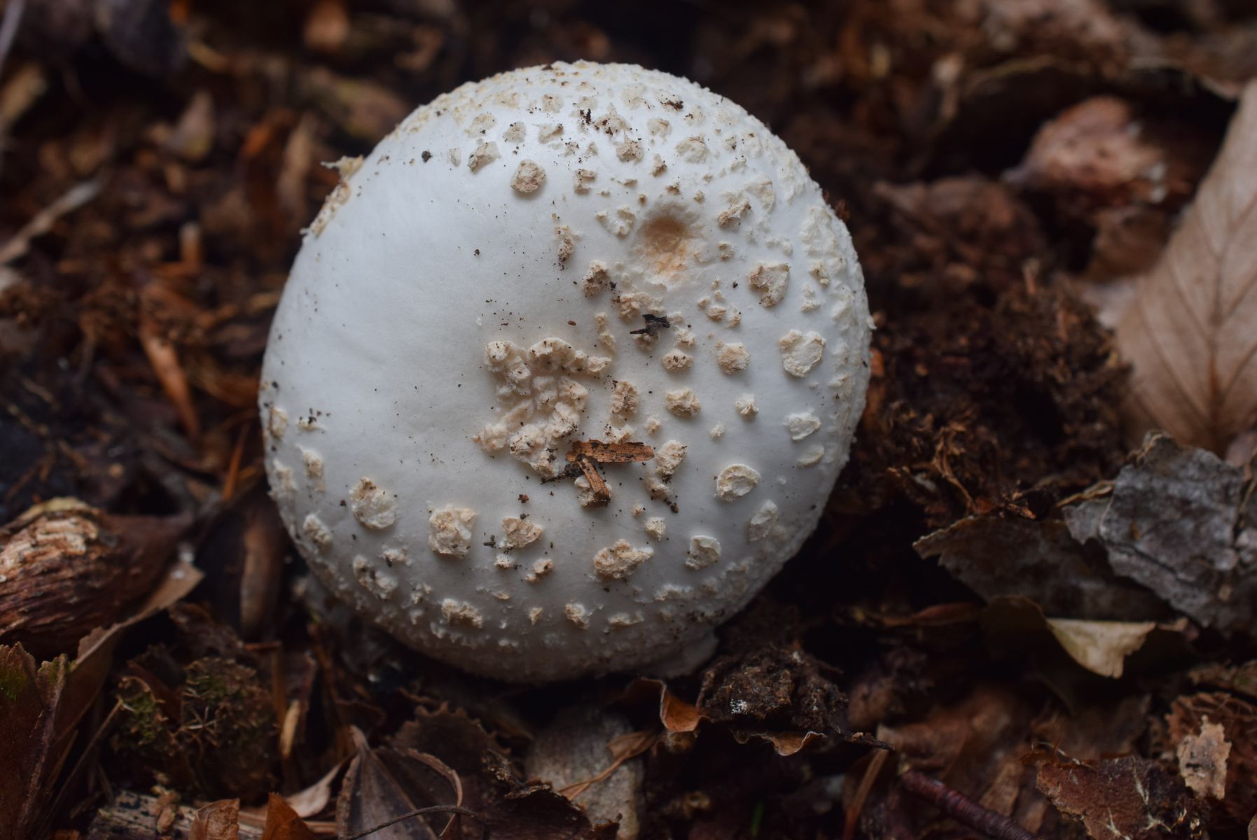 Ich bin sicher, dass Sabina A. citrina alba sofort erkennen würde. Schuppiger Hut und stark gereifter Ring, man kann diesen Pilz nicht leicht mit A. phalloides alba oder A. verna verwechseln