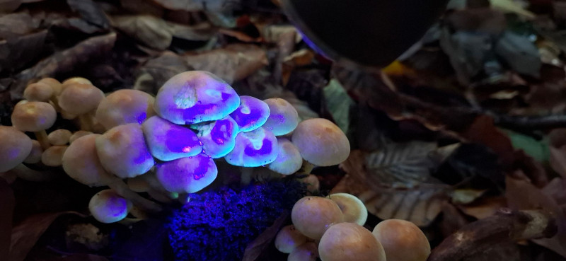 Das stimmt. Ich habe mit der UV-Taschenlampe schon gelegentlich bei den Pilzen in meiner Ausstellung probiert, welche davon Fluoreszieren, und manche Moose waren der Hammer! Die haben knallrot geleuchtet.