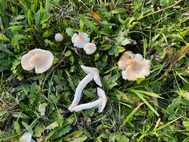 Die Sporen sind inamyloid, die Huthaut besteht aus recht lockeren Hyphen mit zahlreichen Schnallen, riechen tut er sehr erdig. Passt Hygrocybe fornicata (bzw. Cuphophyllus f.) oder ist das vielleicht ganz was anderes?