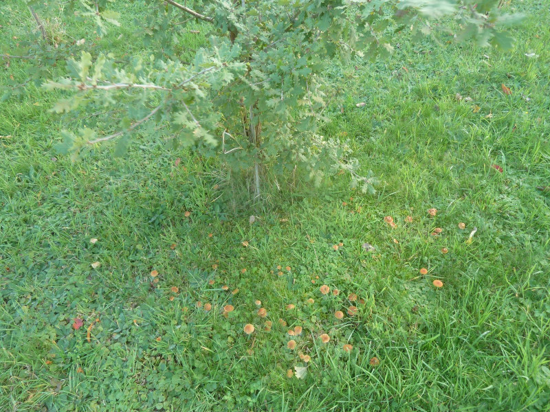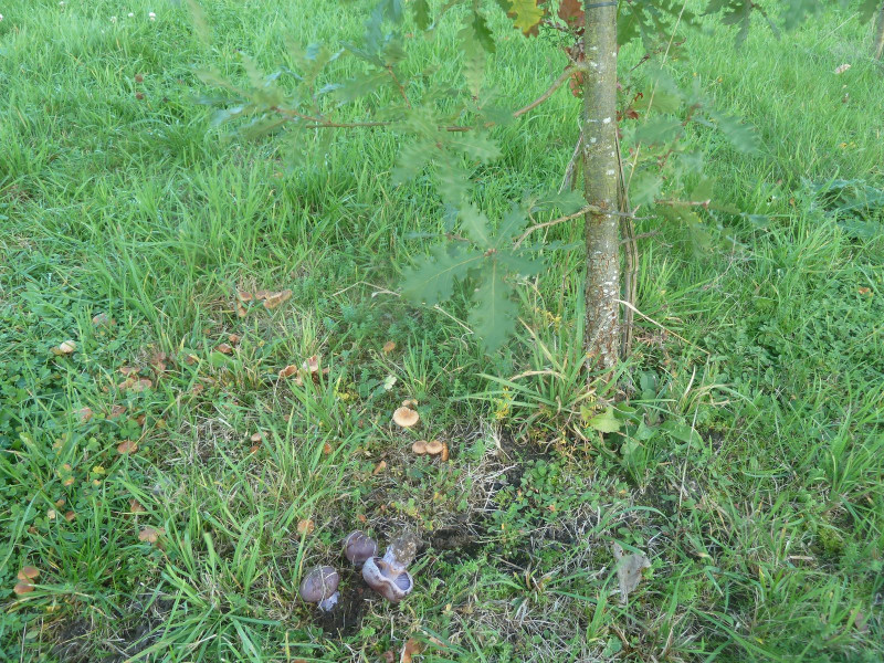 Diese Cortinarie hat mich wirklich erstaunt. Die Flaum-Eiche steht noch keine fünf Jahre dort und schon fruktifizieren Cortinarien, obwohl das Bäumchen gerade einmal einen Stamm von der Stärke eines besseren Besenstiels hat.