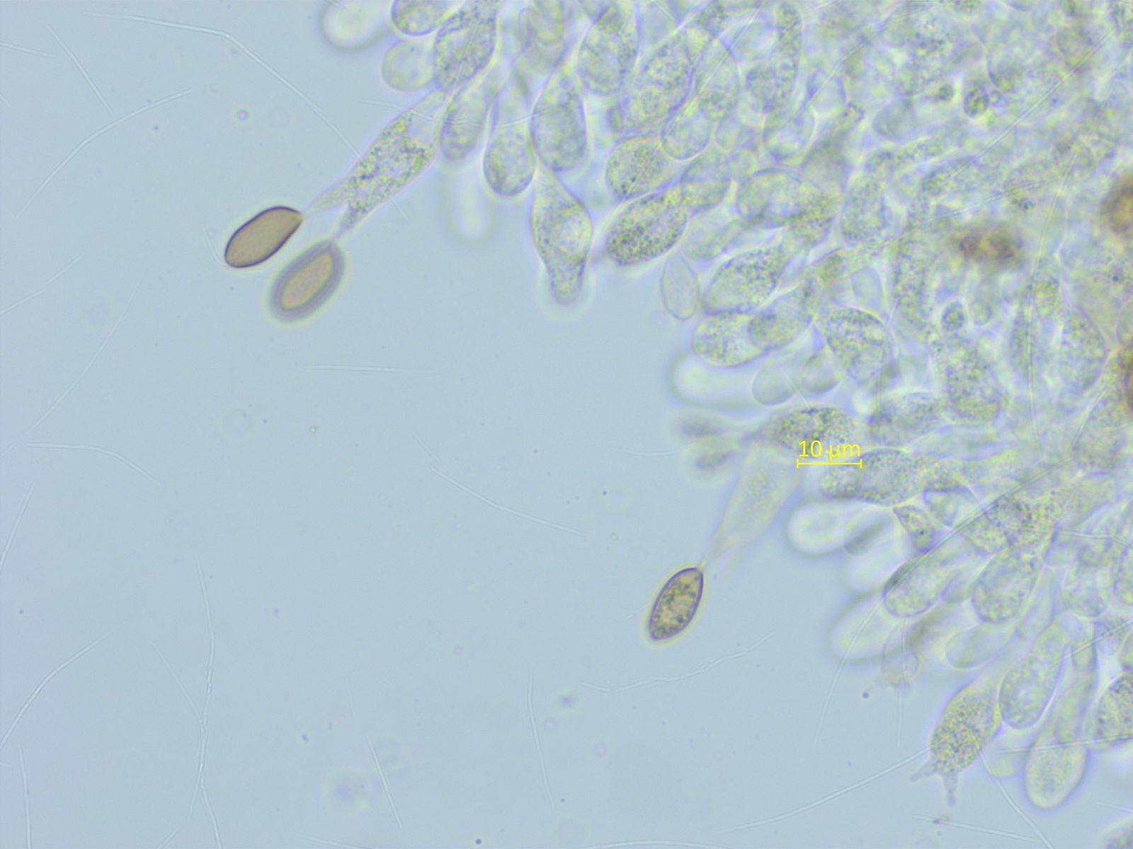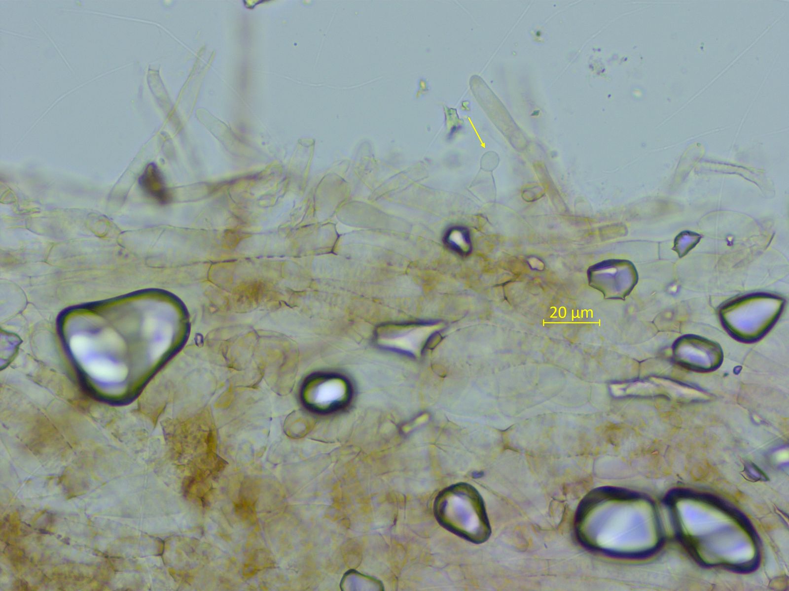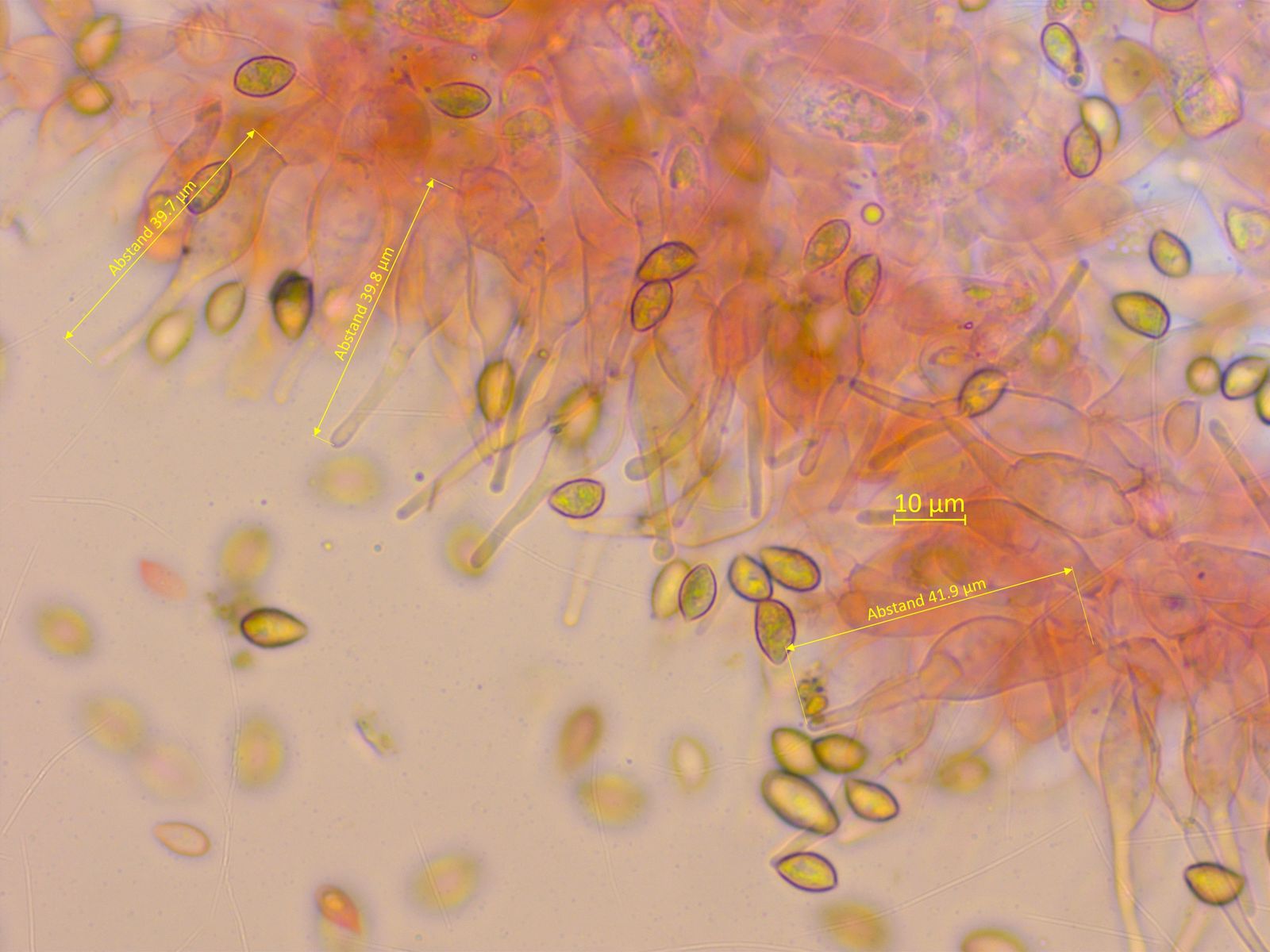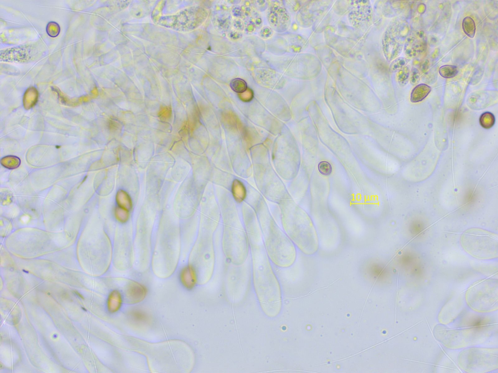 Und mit etwas Geduld findet man sogar kopfige Pileozystiden.
