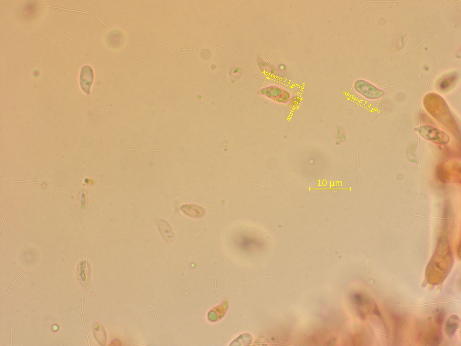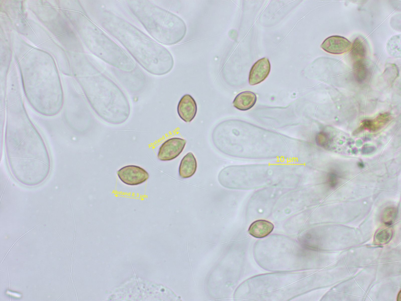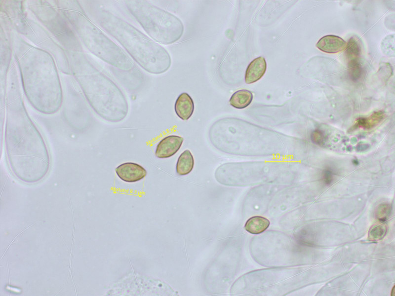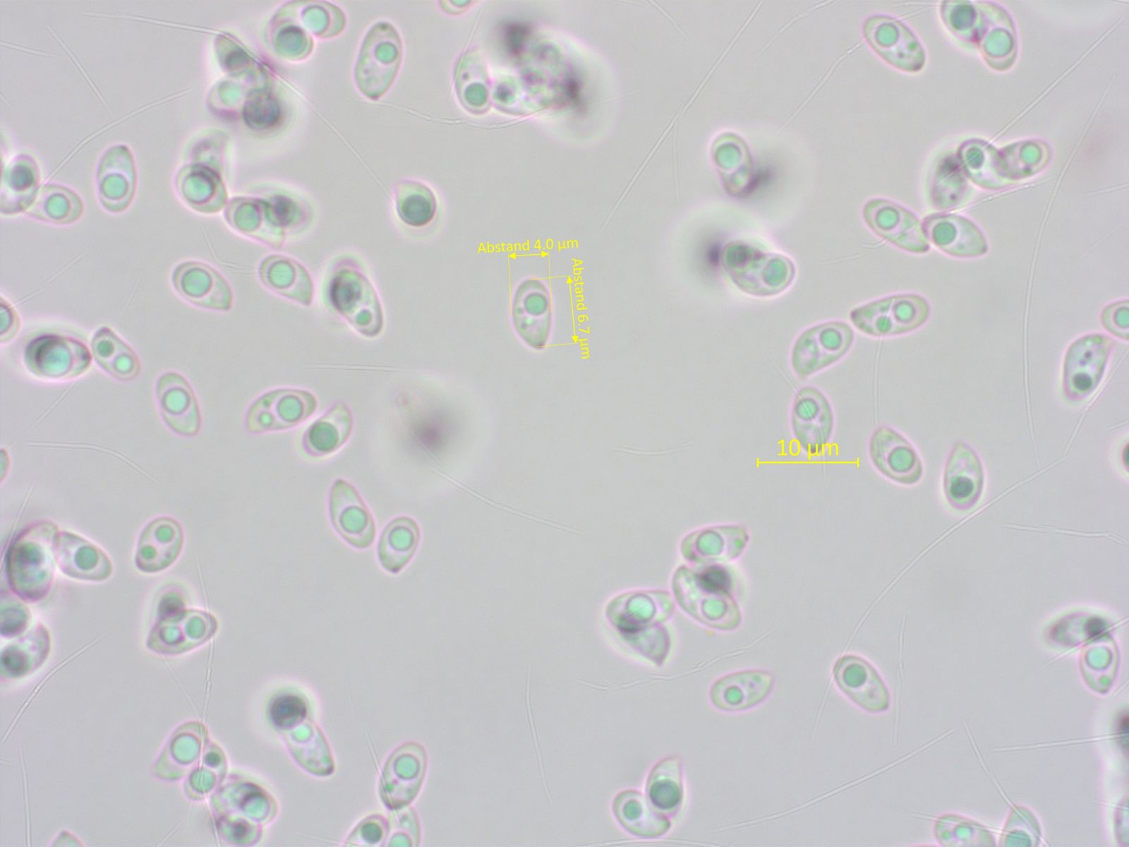Einen Sporenabdruck habe ich nicht bekommen, aber im Lamellenpräparat gab es doch einzelne Sporen.