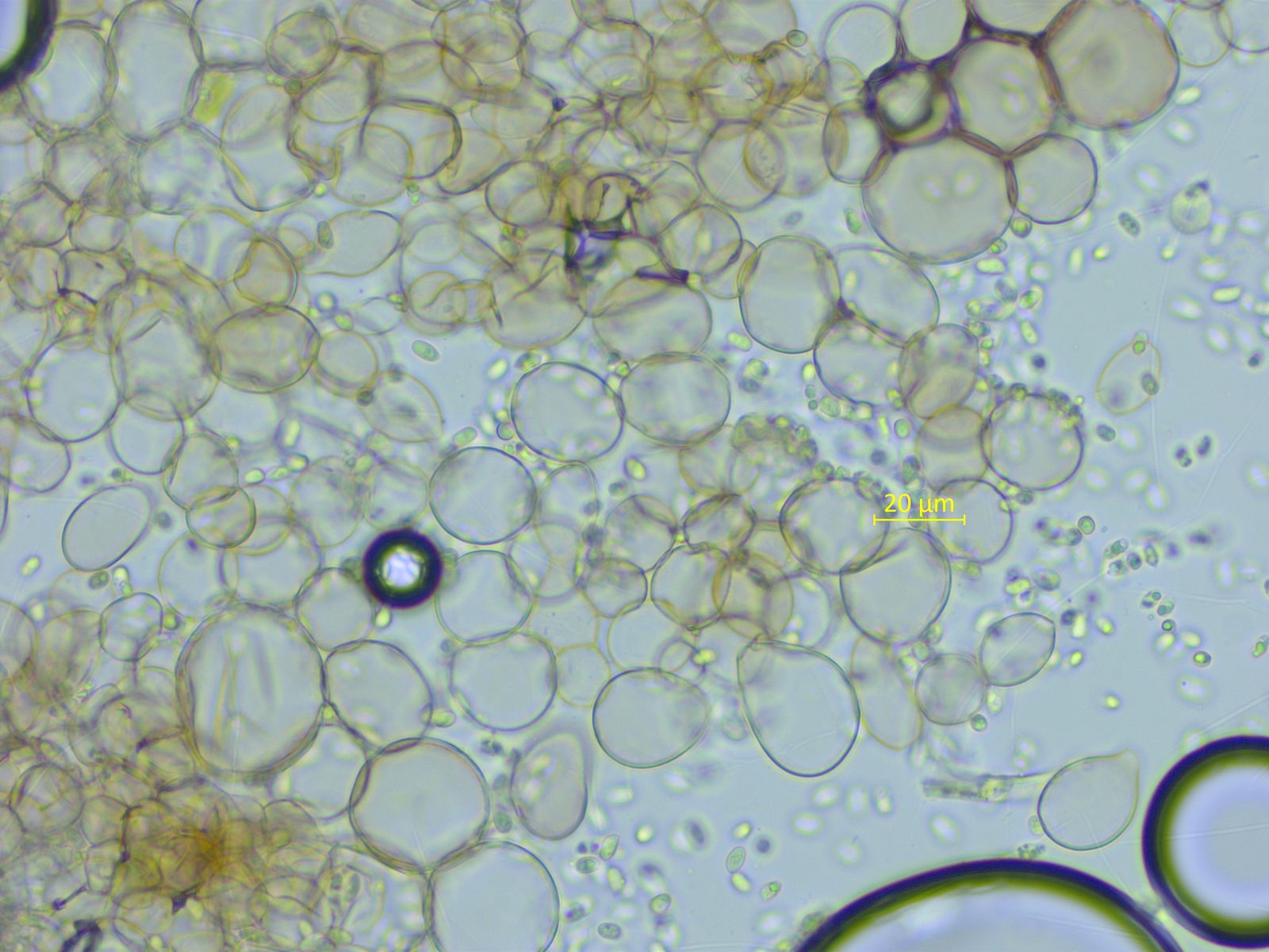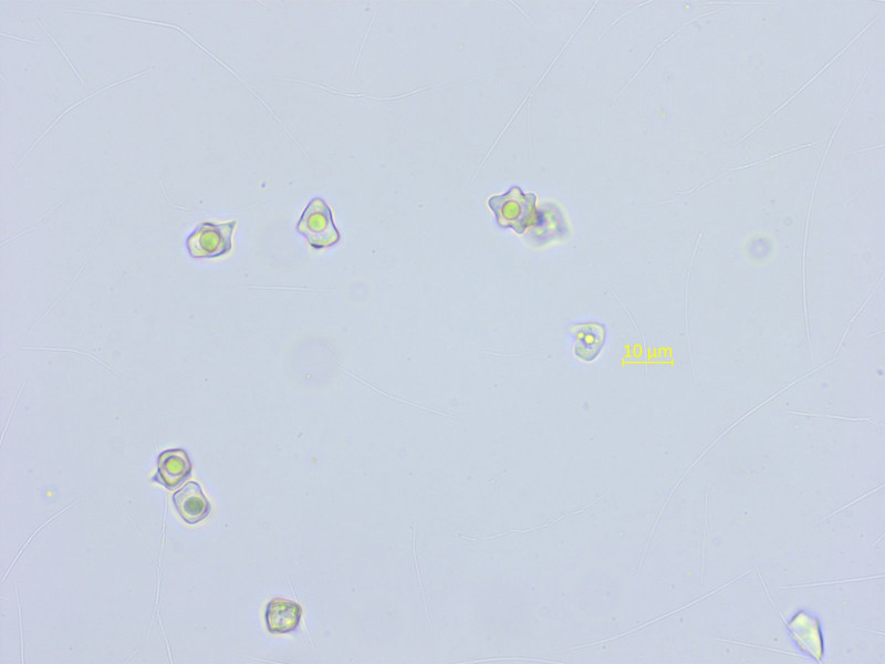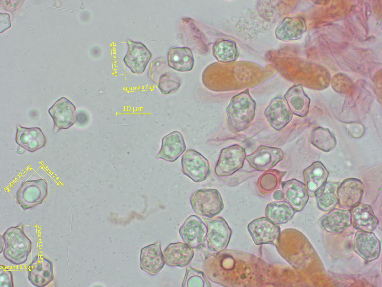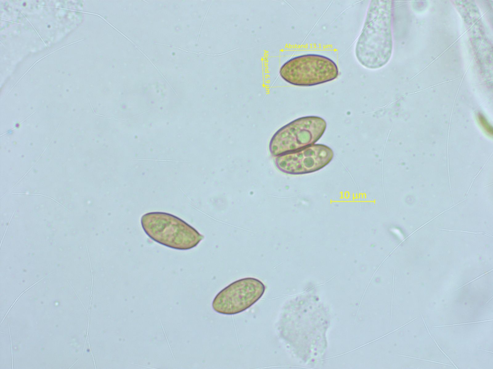 Einen Sporenabdruck habe ich nicht bekommen, aber im Lamellenpräparat gab es doch einzelne Sporen.
