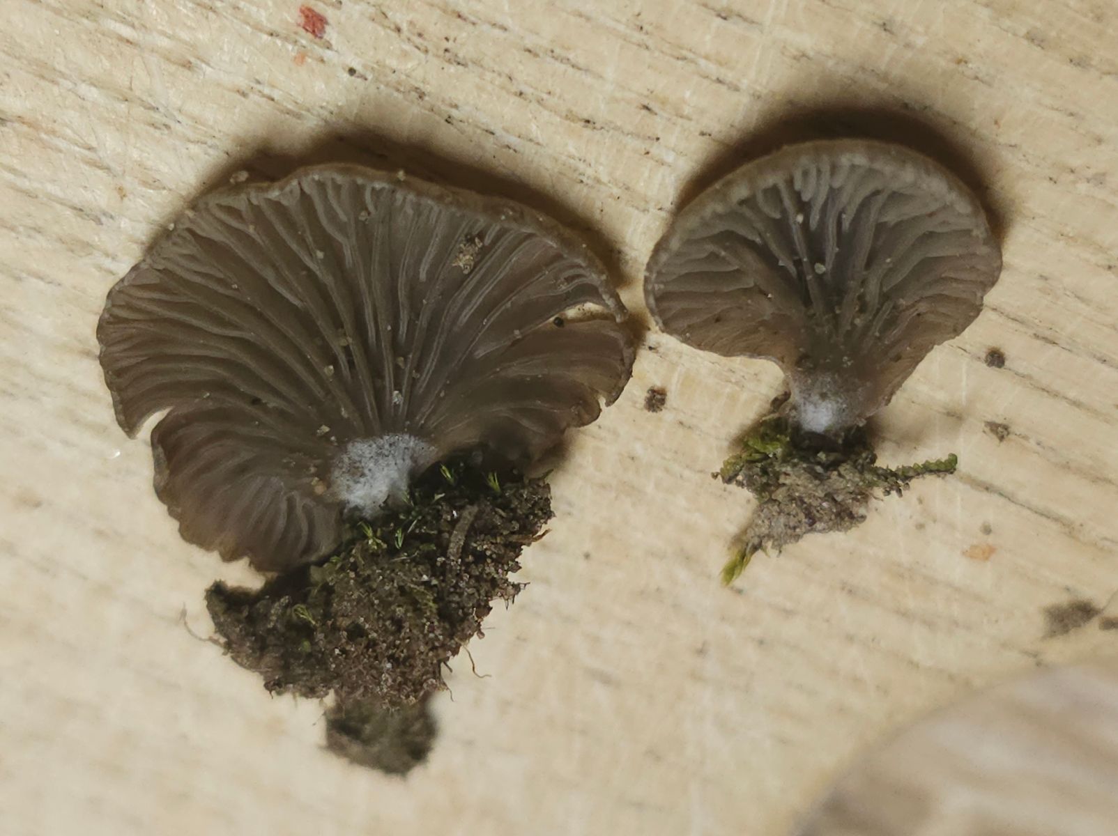 Das gehört in das Aggregat um Arrhenia acerosa. Nach der kürzlich erschienenen Publikation könnte es Arrhenia leucotricha sein.
